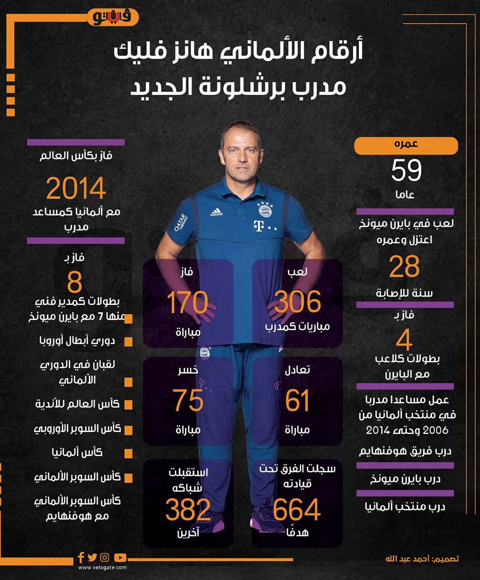 أرقام الألماني هانز فليك مدرب برشلونة الجديد (إنفوجراف) الأربعاء 29/مايو/2024 - 11:03 م 5/29/2024 11:03:04 PM هانز فليك، فليك شارك طباعة 18 حجم الخط شارك طباعة هانز فليك برشلونة فليك بايرن ميونخ ألمانيا