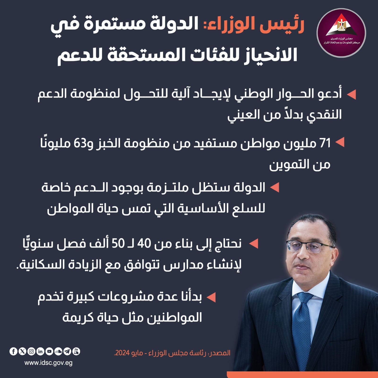 رئيس الوزراء يكشف حقيقة إلغاء الدعم