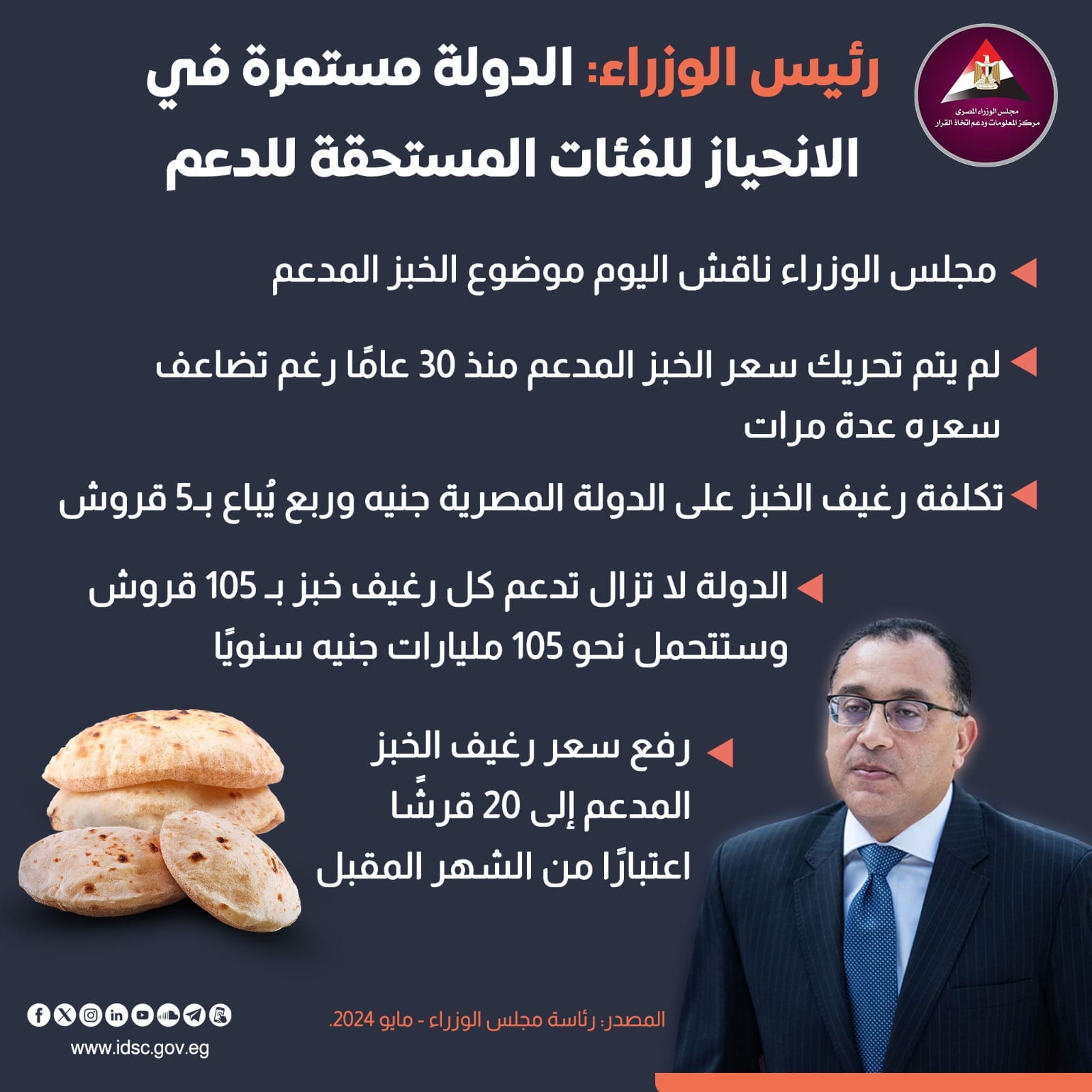 أبرزها رفع سعر الخبز المدعم، أهم تصريحات رئيس الوزراء اليوم (إنفوجراف)