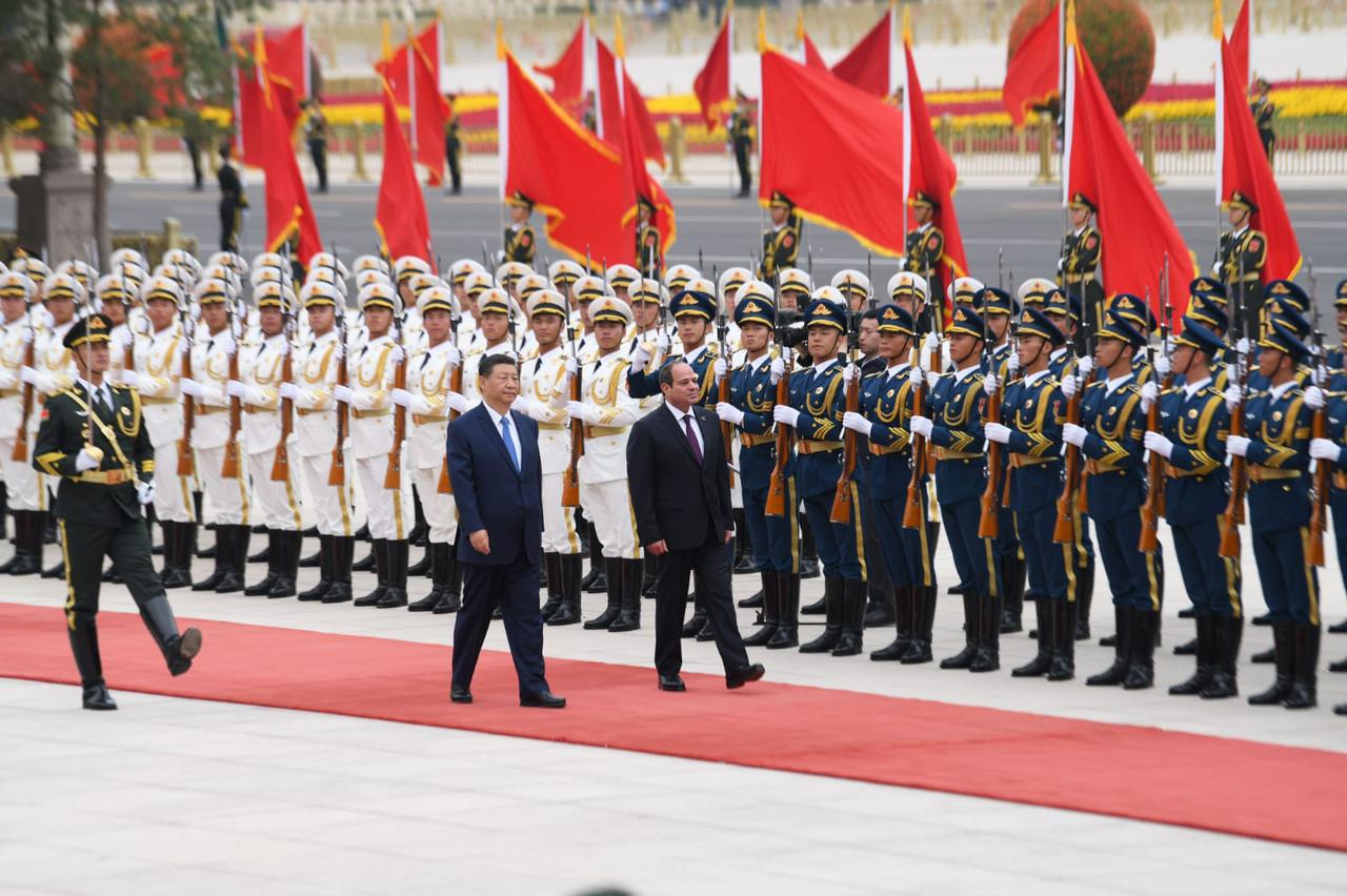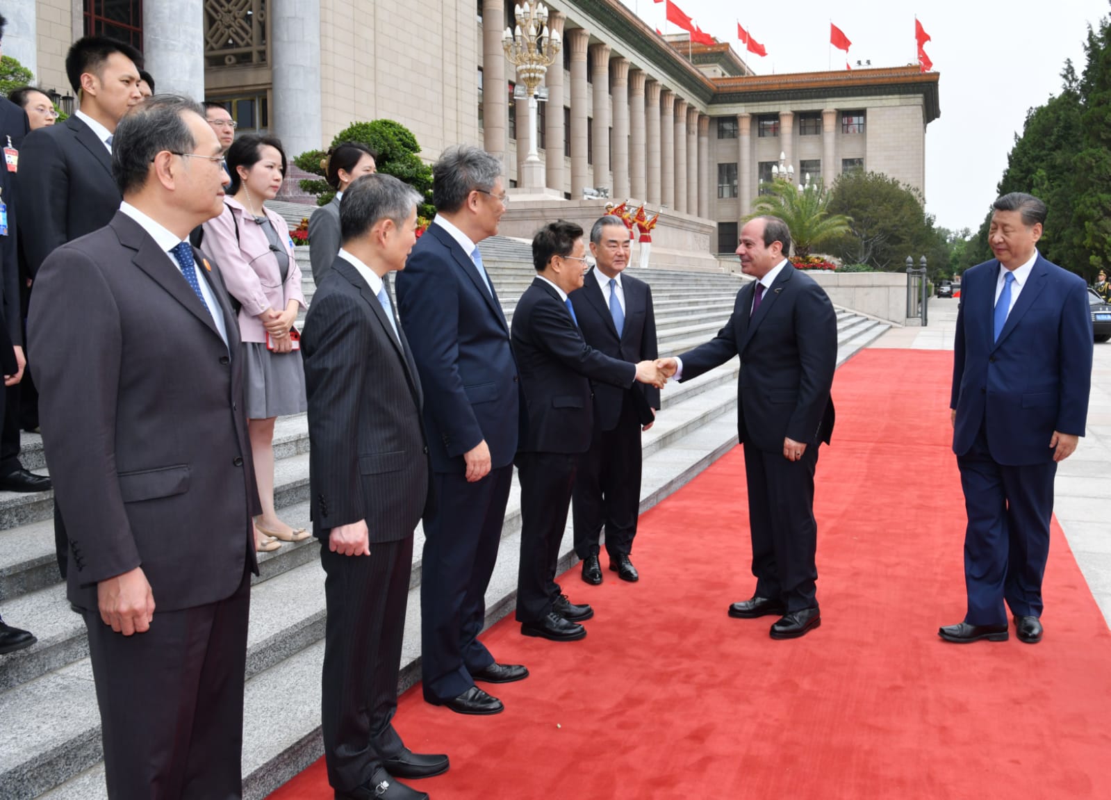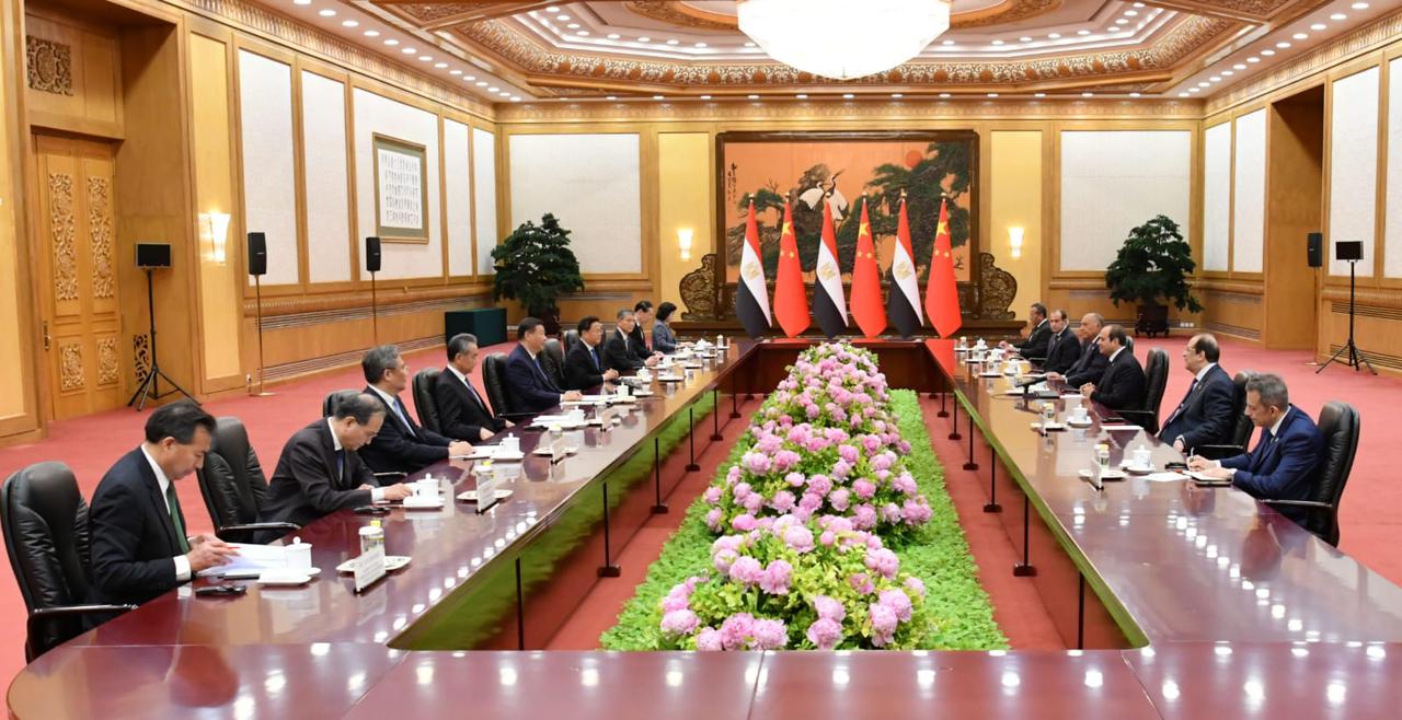 وصرح المتحدث الرسمي باسم رئاسة الجمهورية أن الرئيس الصيني استقبل الرئيس بقاعة الشعب الكبرى في بكين، حيث أجريت مراسم الاستقبال الرسمية، وتم عزف السلامين الوطنيين واستعراض حرس الشرف، وتلى ذلك عقد محادثات معمقة بين الرئيسين، تناولت كيفية تعزيز العلاقات الثنائية تزامنًا مع الذكرى العاشرة لترفيع العلاقات بين مصر والصين إلى مستوى الشراكة الاستراتيجية الشاملة، وقد صدر في هذا الإطار بيان مشترك يفصّل مجالات التعاون والتنسيق خلال المرحلة المقبلة، بما في ذلك الإعلان عن عام "الشراكة المصرية الصينية"، الذي سيشهد العديد من فعاليات التعاون الدبلوماسية والاقتصادية والثقافية بين البلدين.