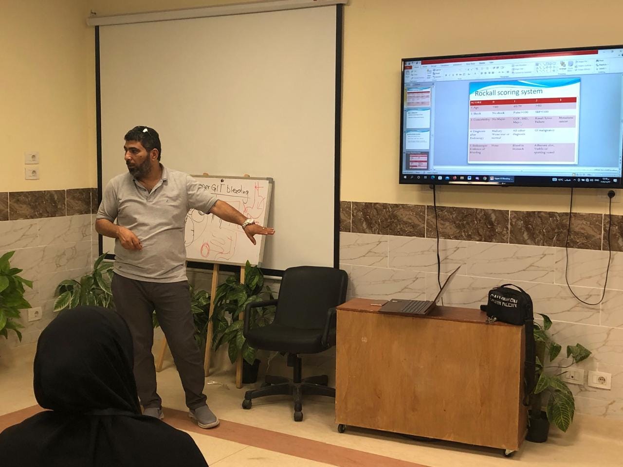 وذلك ايضا بحضور الدكتور محمد الدشاش استشاري الباطنة العامة، حيث ألقى محاضرة بعنوان Lower GIT bleeding ثم ألقى الدكتور عمر خليل أخصائي الباطنة العامة