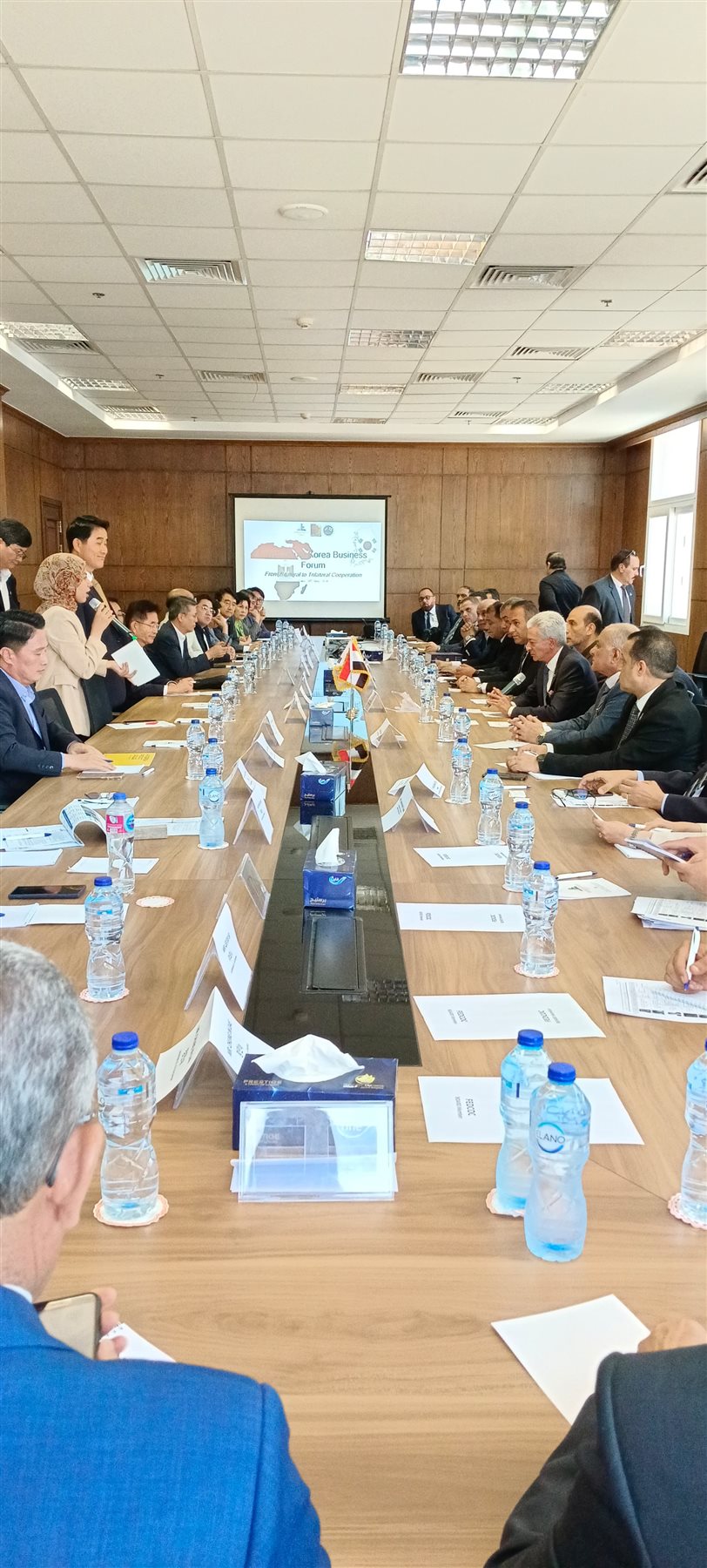 عقد الاتحاد العام للغرف التجارية المصرية اجتماعا موسعا مع وفد الجمعية المصرية الكورية للتنمية التي تشمل 24 شركة في قطاعات المنسوجات والملابس الجاهزة والأسماك وتكنولوجيا المعلومات.