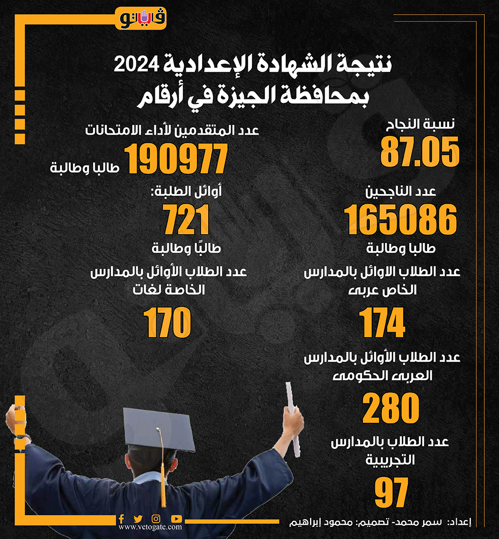 نتيجة الشهادة الإعدادية 2024 بمحافظة الجيزة في أرقام (إنفوجراف) الخميس 30/مايو/2024 - 02:09 م 5/30/2024 2:09:29 PM نتيجة الشهادة الإعدادية 2024 سمر محمد شارك طباعة 18 حجم الخط شارك طباعة نتيجة الشهادة الإعدادية 2024 محافظة الجيزة الشهادة الإعدادية 2024 نتيجة الشهادة الاعدادية
