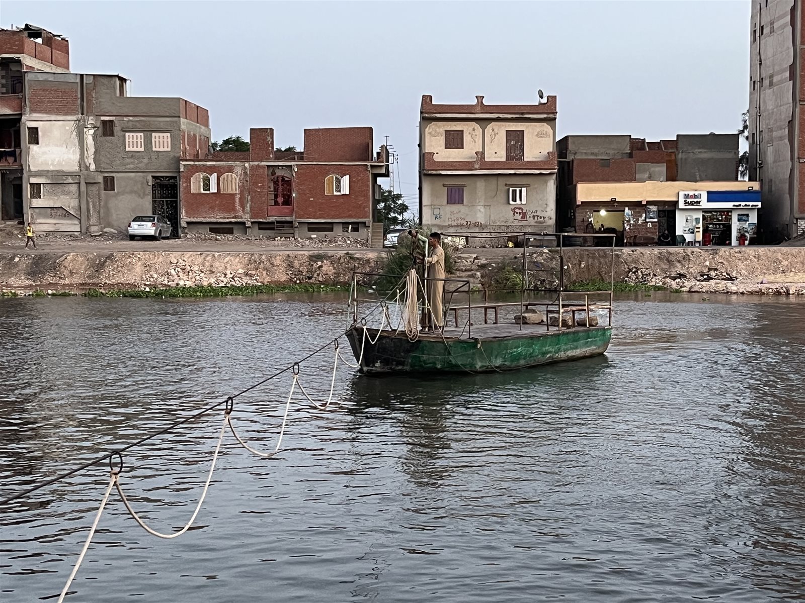 كما أضاف أنه يعمل بأحد الشركات الخاصة مما يحتم عليه الخروج للعمل مبكرًا في تمام الساعة الخامسة فجرًا فإذا به تفاجأ بقطع بسير المعدية المعدني الذي تأكل من الصدأ أو حبالها المتهالكة مما يتسبب في توقف وعطل بها إذا يقوم بالسير على قدميه مسافة خمسة كيلومترات حتي يجد وسيلة مواصلات تنقله حيث أكد أن تلك المعدية هي وسيلة التنقل الوحيدة الموجودة بالقرية حتى تنقله الجانب الآخر أو المقابل حيث الخدمات الأساسية.
