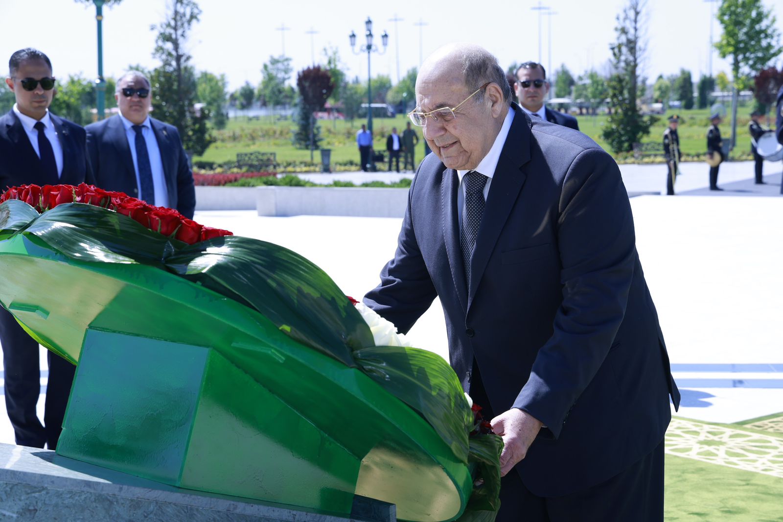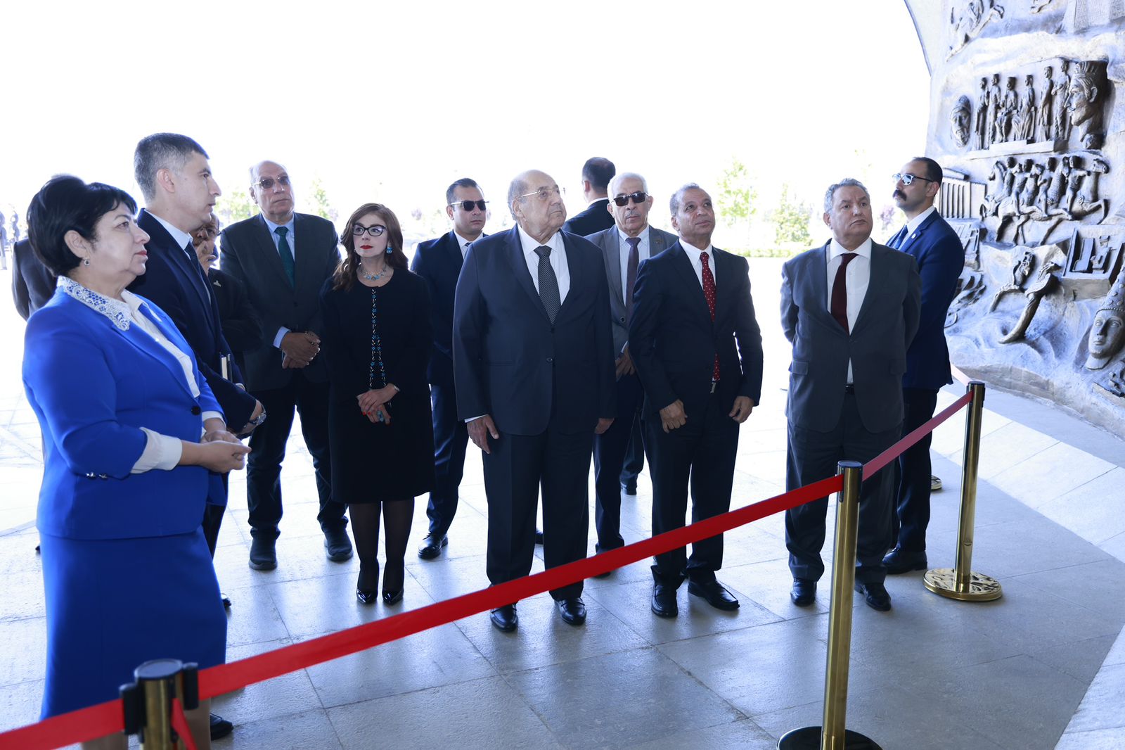 وقام المستشار عبد الوهاب عبد الرازق، بوضع إكليل من الزهور على النصب التذكارى للاستقلال بطشقند.