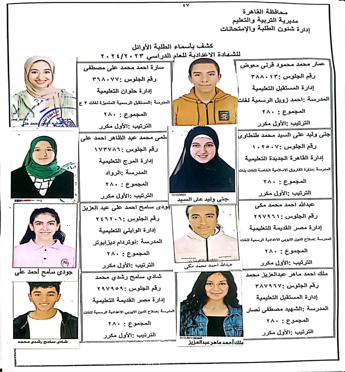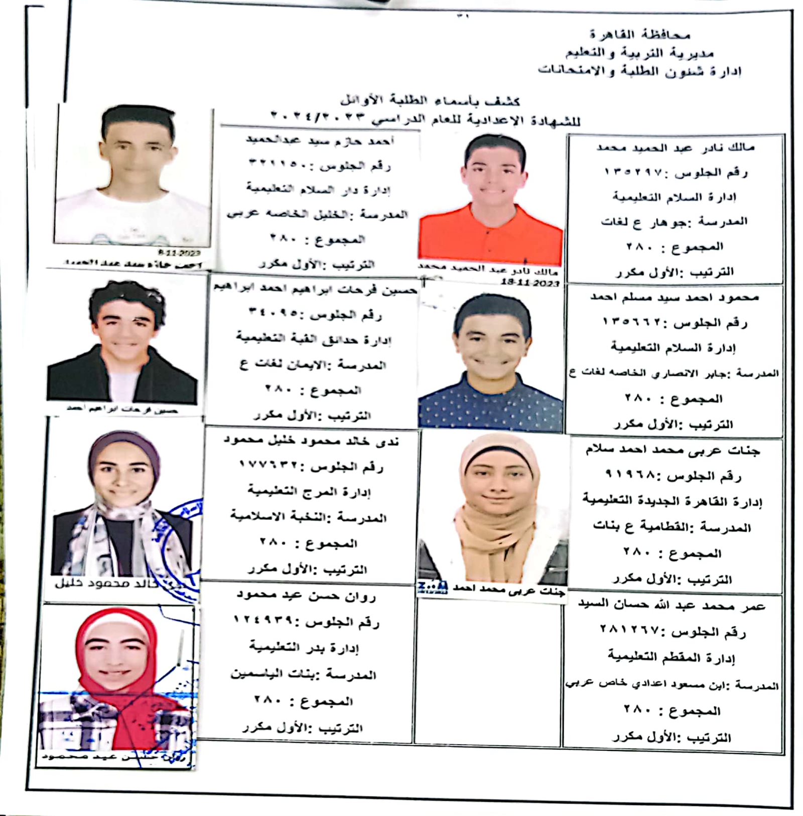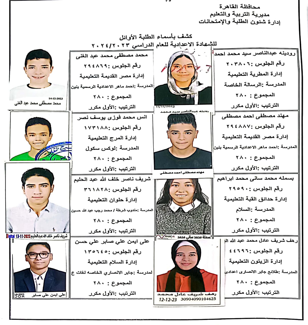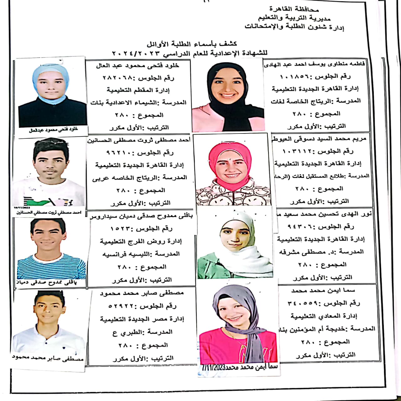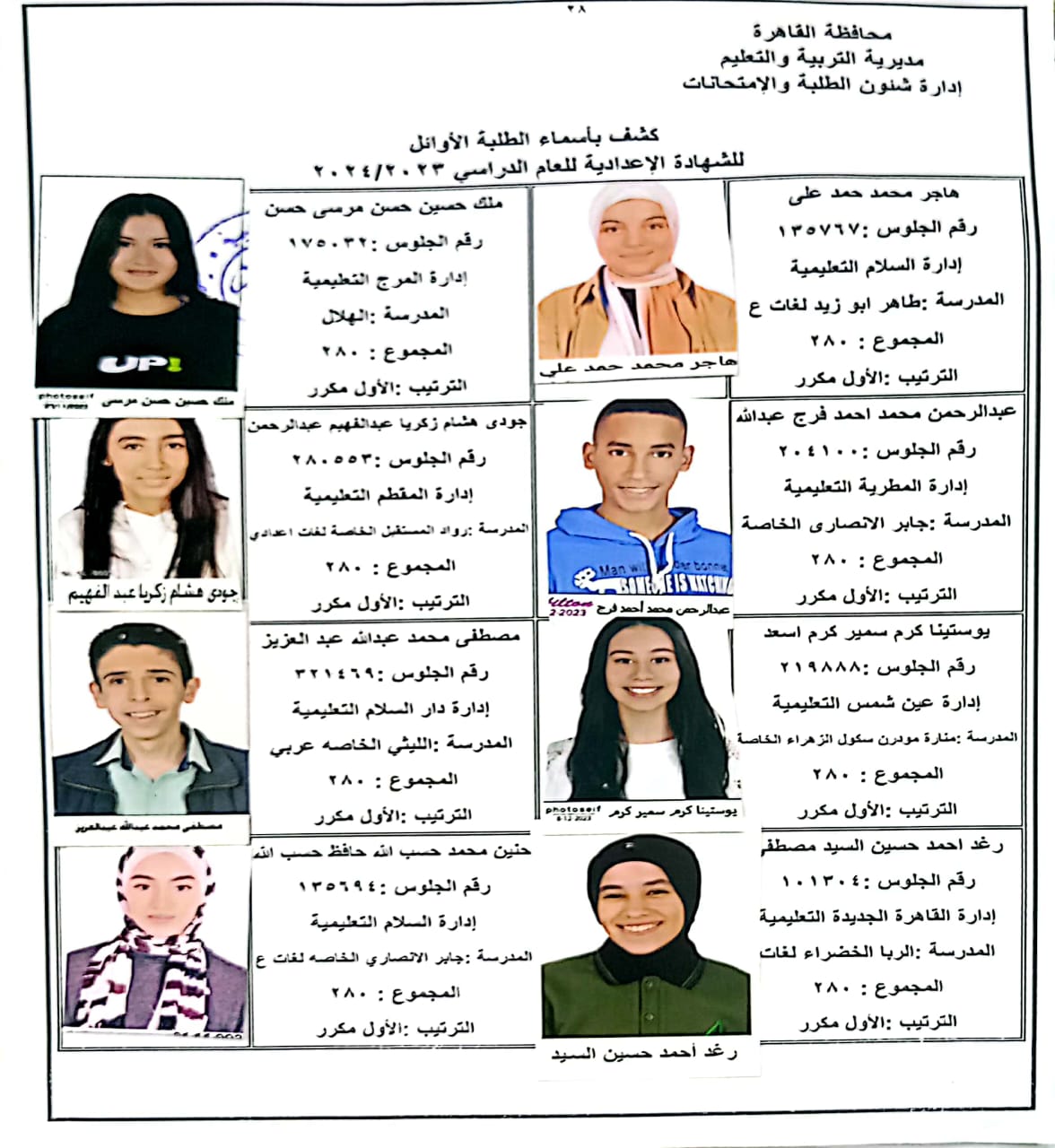 ننشر أسماء أوائل الشهادة الإعدادية 2024 بالقاهرة