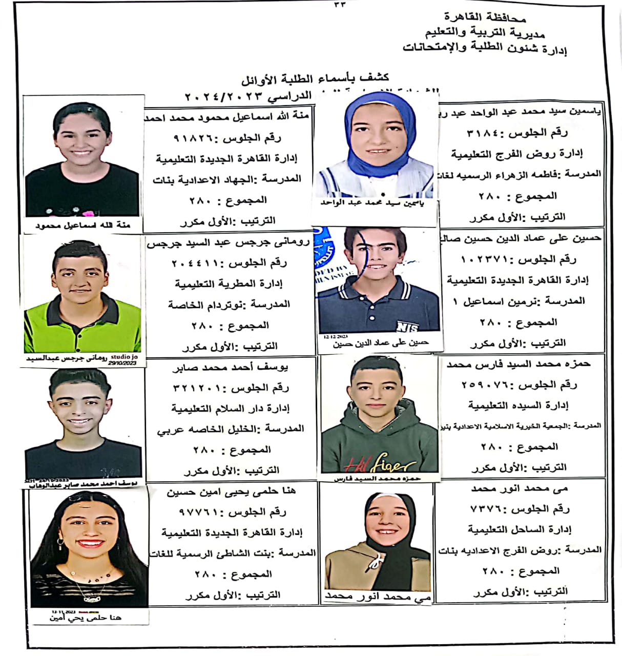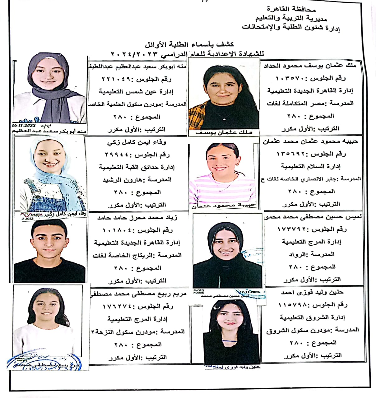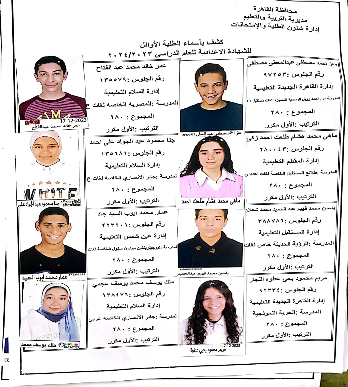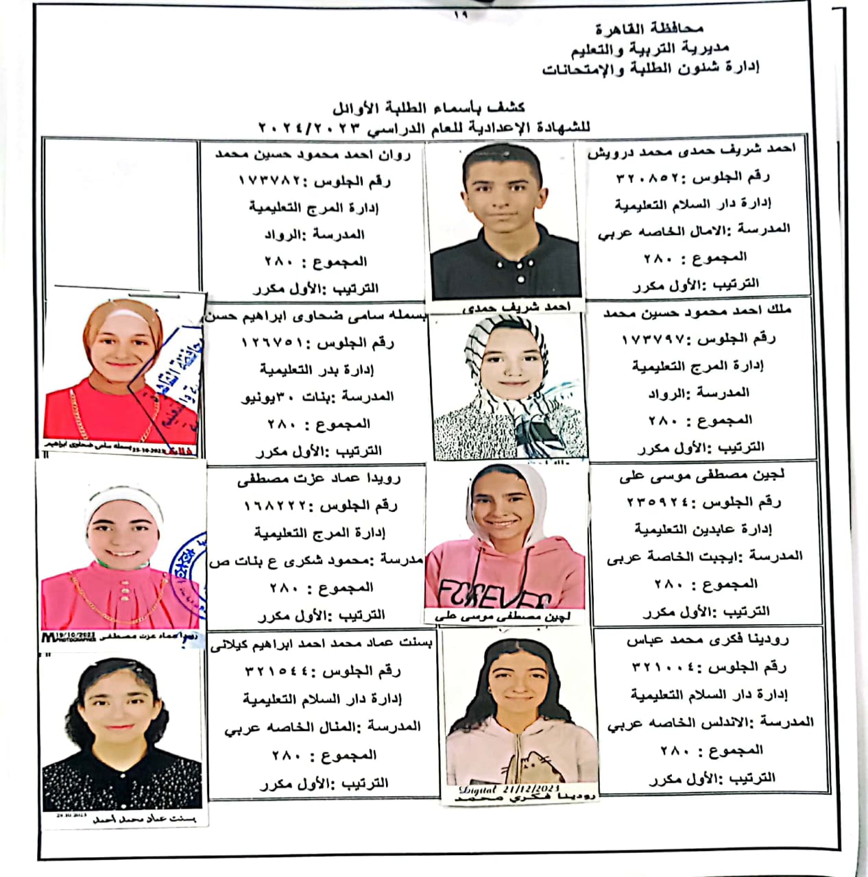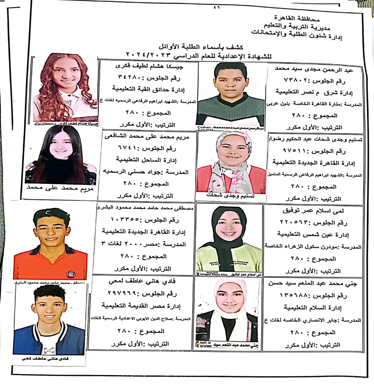 ننشر أسماء أوائل الشهادة الإعدادية 2024 بالقاهرة