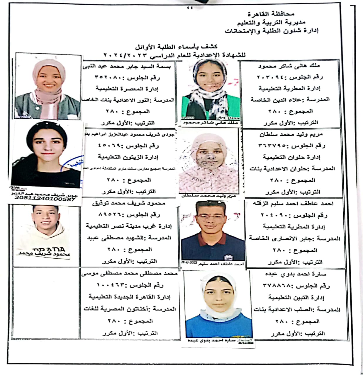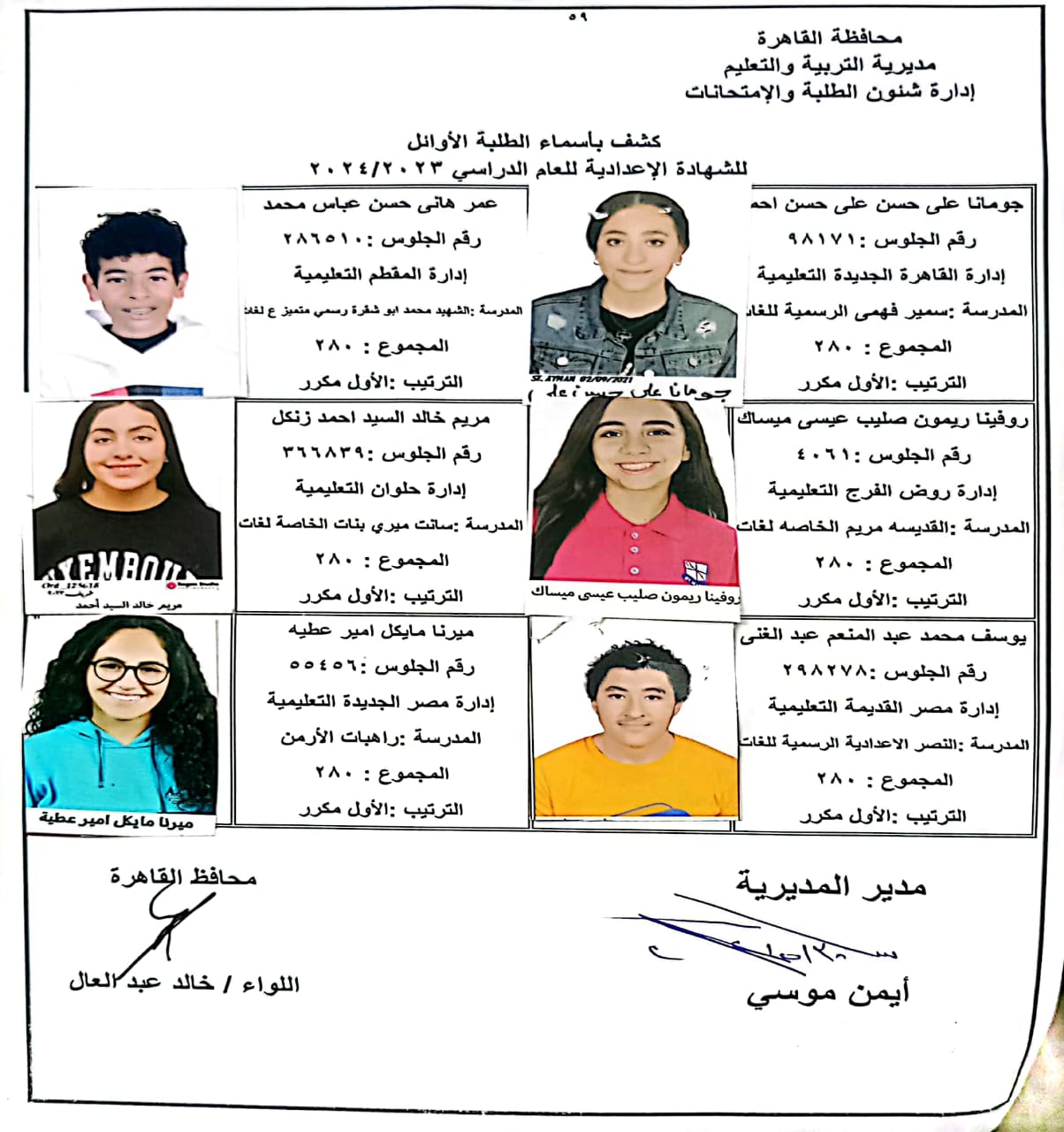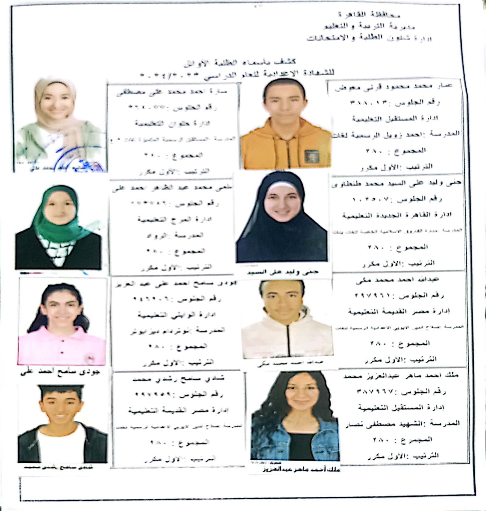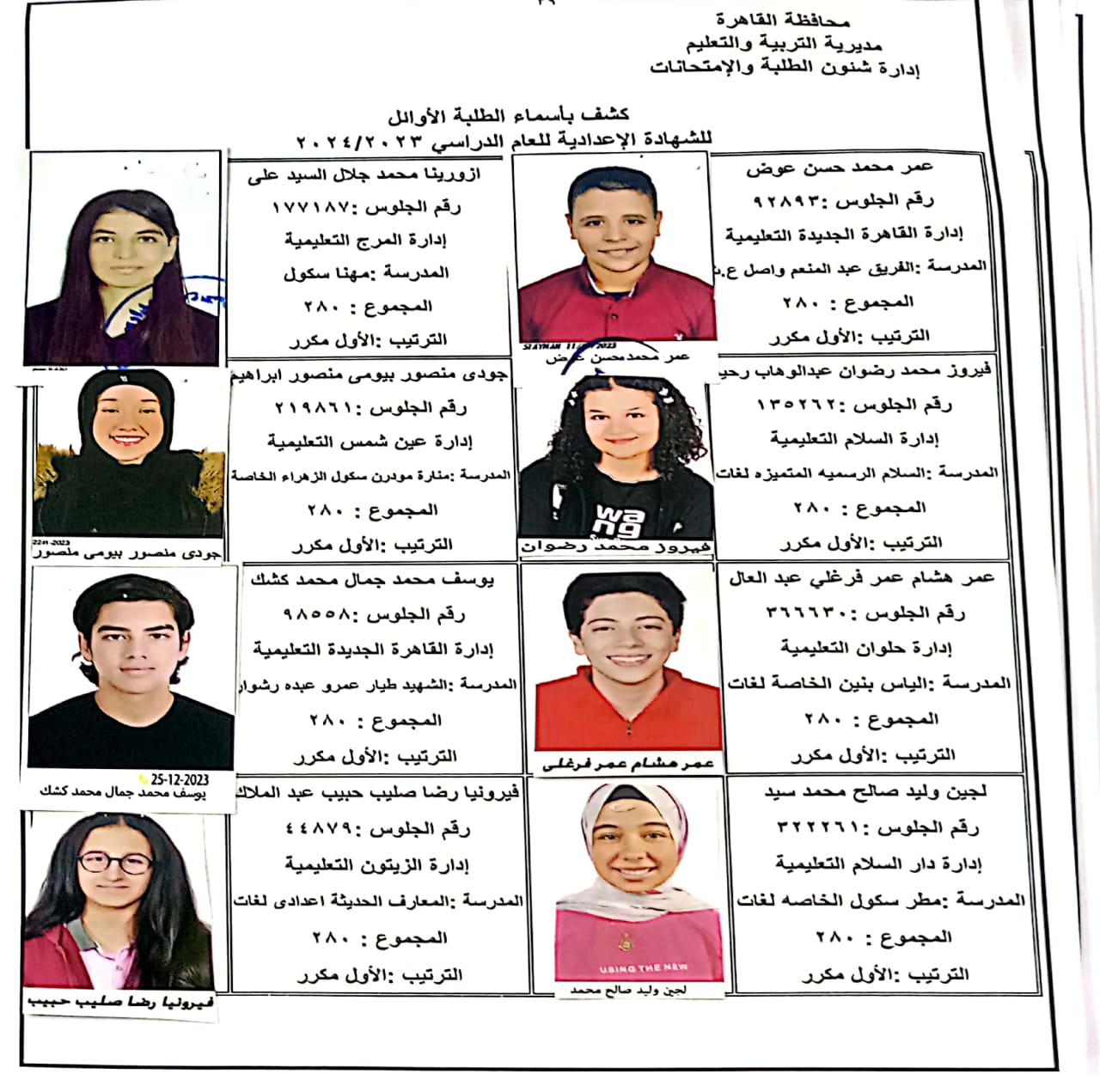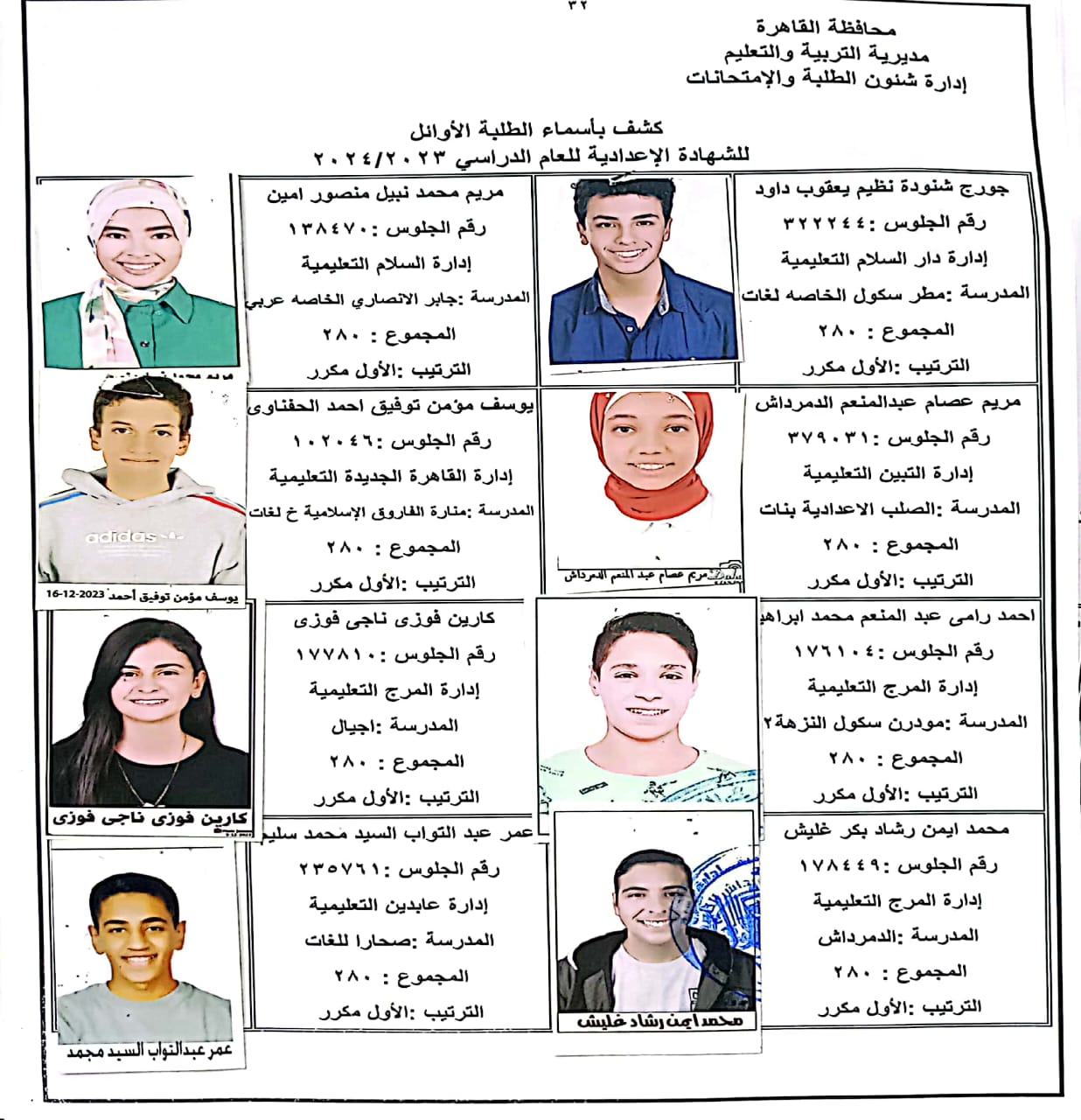 ننشر أسماء أوائل الشهادة الإعدادية 2024 بالقاهرة
