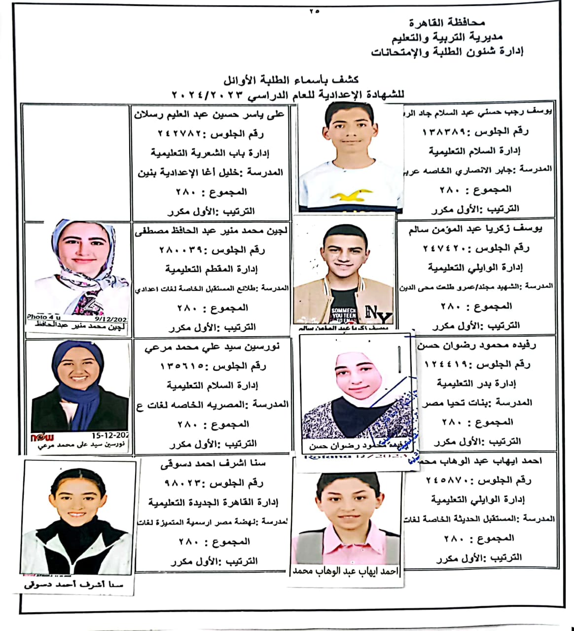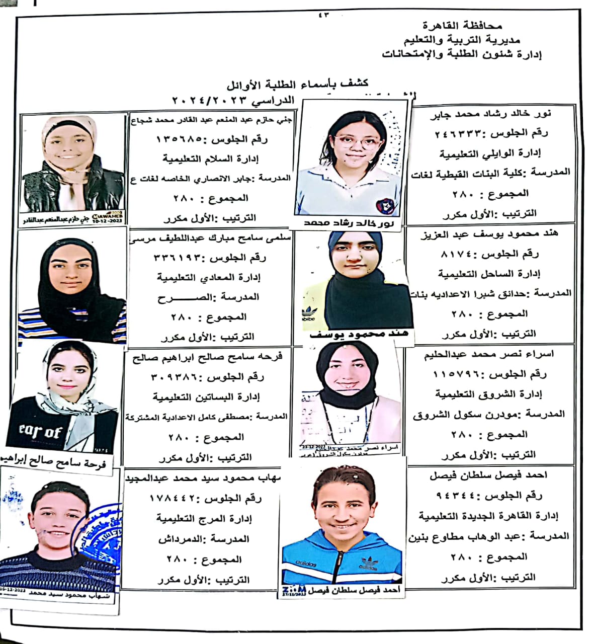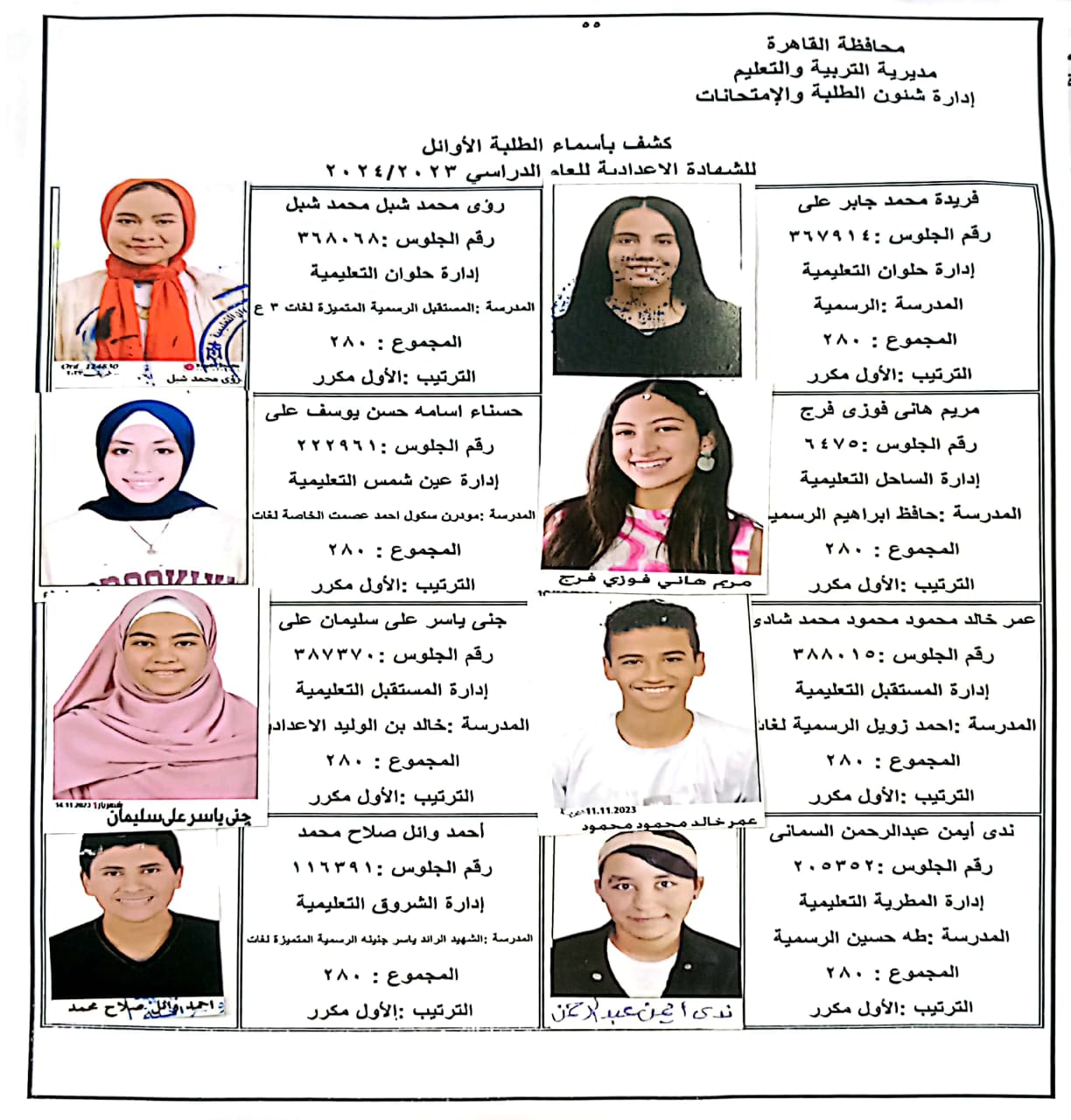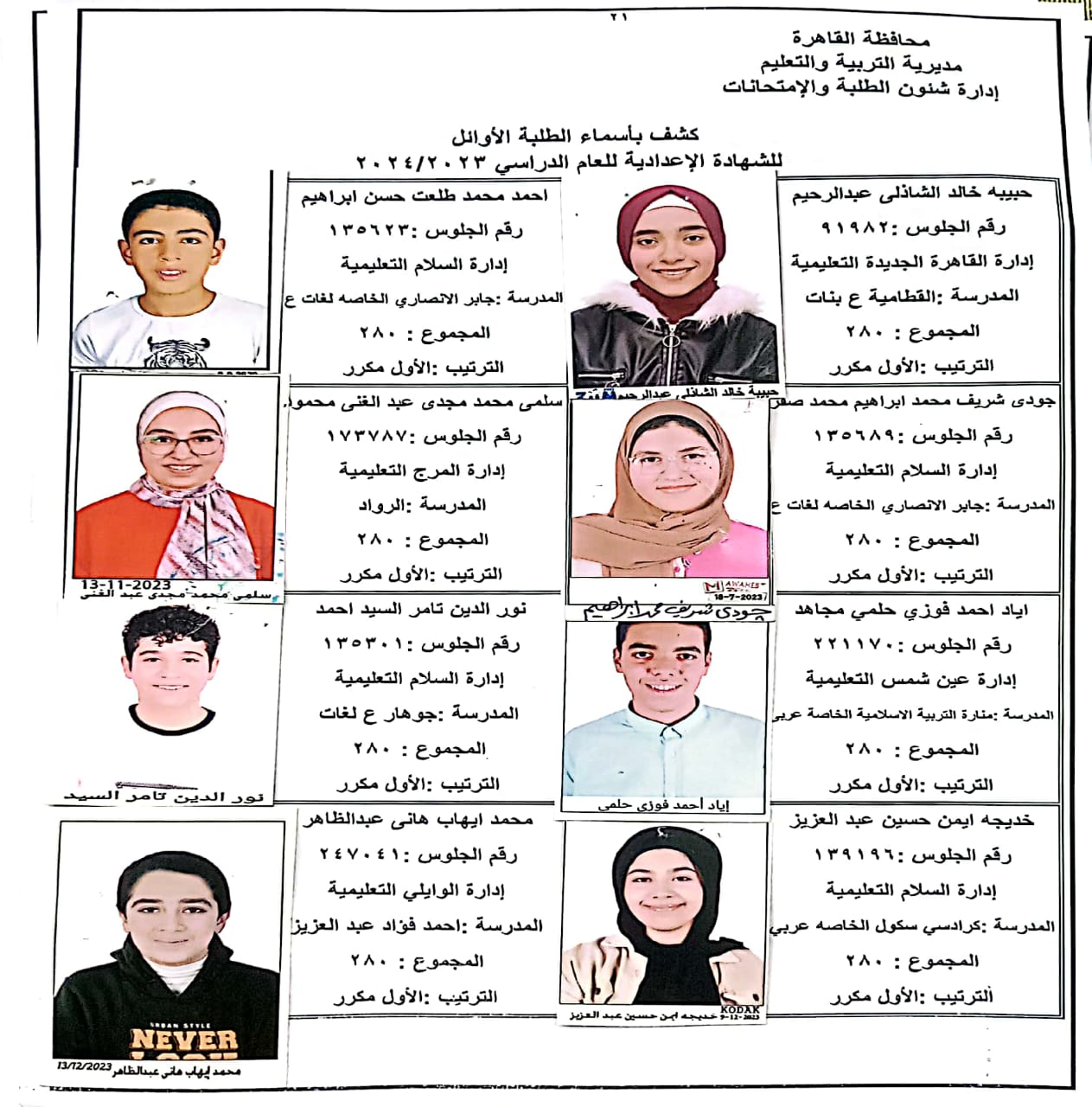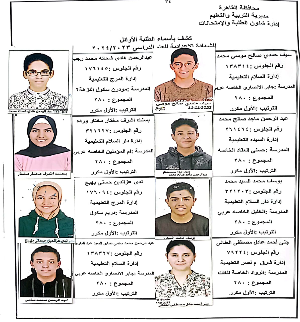 ننشر أسماء أوائل الشهادة الإعدادية 2024 بالقاهرة