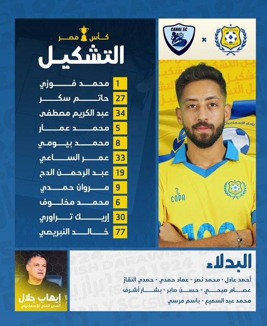 إيهاب جلال يعلن تشكيل الإسماعيلي أمام القناة في كأس مصر