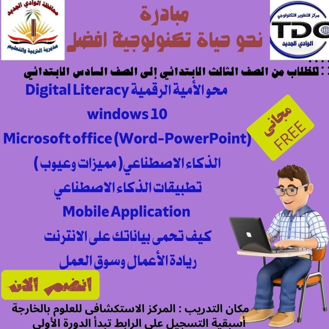 أعلن المهندس سيد عبد العزيز وكيل التعليم بالوادى الجديد ' إطلاق مبادرة نحو حياة تكنولوجية أفضل بالتعاون مع مركز التطوير التكنولوجى بالمديرية.