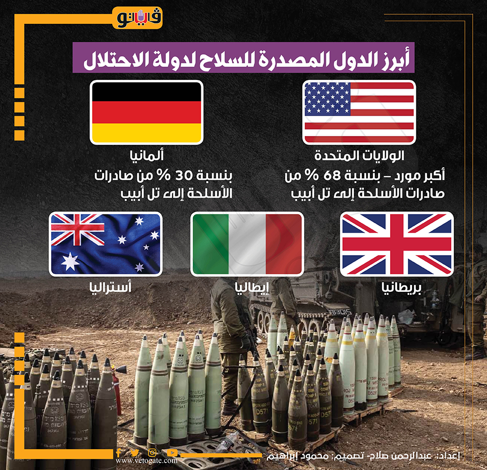 أبرز الدول المصدرة للسلاح لدولة الاحتلال (إنفوجراف) السبت 01/يونيو/2024 - 05:44 م 6/1/2024 5:44:21 PM جيش الاحتلال، فيتو عبدالرحمن صلاح شارك طباعة 18 حجم الخط شارك طباعة تل أبيب بيع الأسلحة إلى الاحتلال الولايات المتحدة ألمانيا صادرات السلاح لإسرائيل طوفان الأقصى