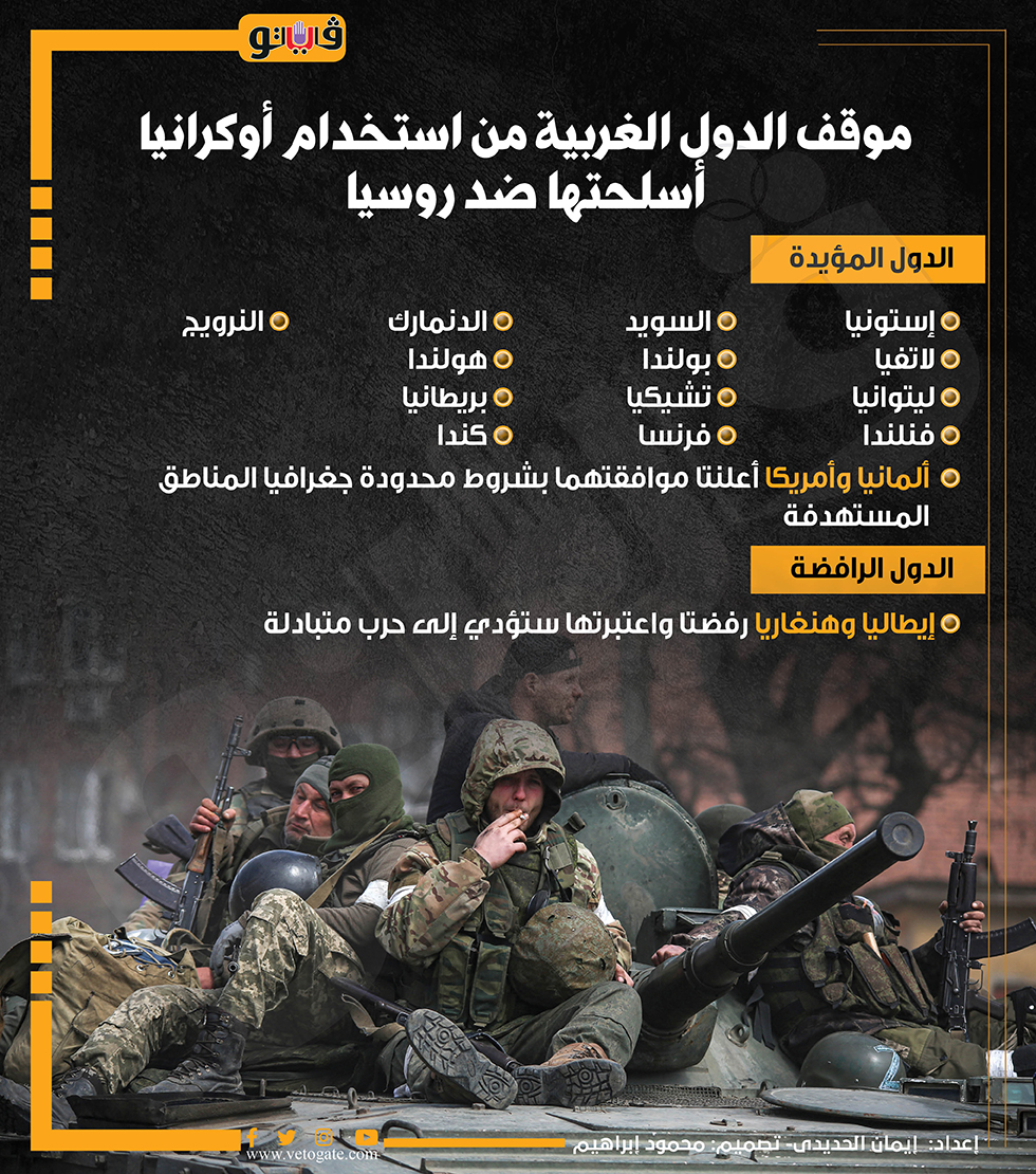 موقف الدول الغربية من استخدام أوكرانيا أسلحتها ضد روسيا (إنفوجراف) السبت 01/يونيو/2024 - 11:48 ص 6/1/2024 11:48:02 AM الناتو، فيتو إيمان الحديدى شارك طباعة 18 حجم الخط شارك طباعة الدنمارك أمريكا النرويج إيطاليا أوكرانيا هنغاريا روسيا