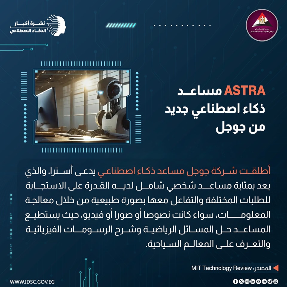 أطلقت شركة جوجل مساعد ذكاء اصطناعي جديد يدعى أسترا ، يعد بمثابة مساعد شخصي شامل ، حيث يمتلك القدرة على الاستجابة للطلبات المختلفة والتفاعل معها بصورة طبيعية من خلال معالجة المعلومات سواء كانت نصوصا أو صورا أو فيديو.