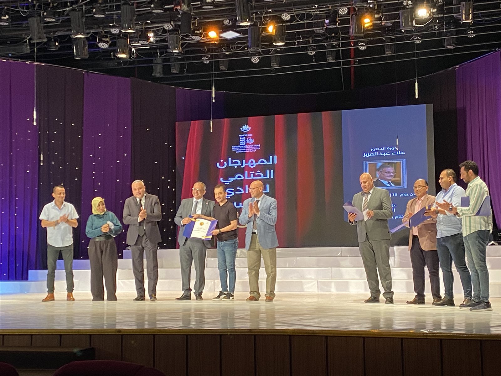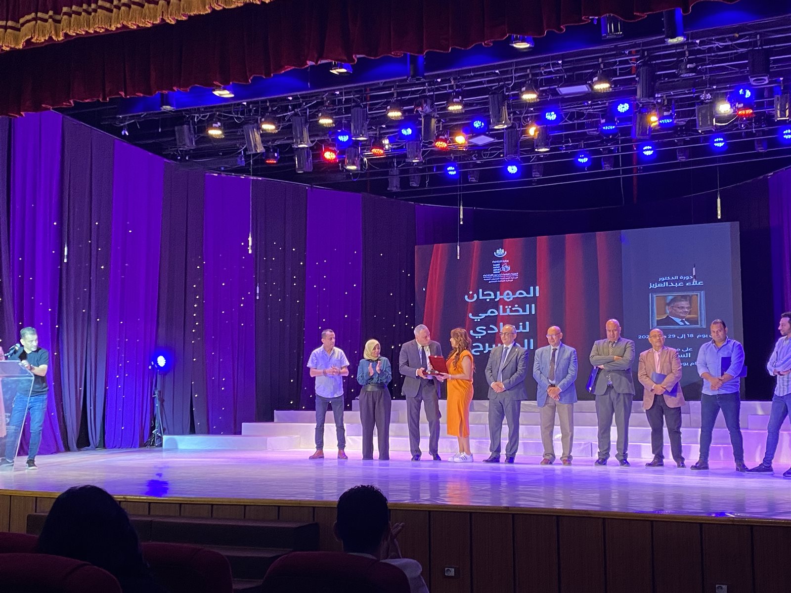 وفي لفتة إنسانية مميزة، أهدى المهرجان الختامي لنوادي المسرح تكريما خاصا لروح الدكتور الراحل علاء عبد العزيز، والتي حملت دورة هذا العام اسمه، وتسلمت التكريم أرملة الراحل.