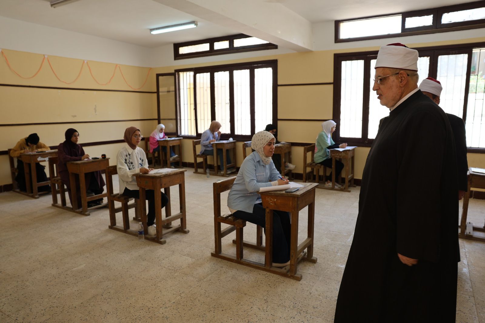 كما تفقد فضيلته لجنة معهد فتيات حلوان الثانوي، وأوصى الطلاب بالتركيز أثناء الإجابة على الأسئلة، مؤكدا أن الطالب الأزهري قادر على النهوض بوطنه وأمته باجتهاده وتفوقه العلمي، مطالبا إياهم بضرورة استغلال الوقت واستثمار كل لحظة في حياتهم، لأن الوطن يعقد آمالًا كبيرة عليهم من أجل تحقيق رفعته وبناء نهضته.
