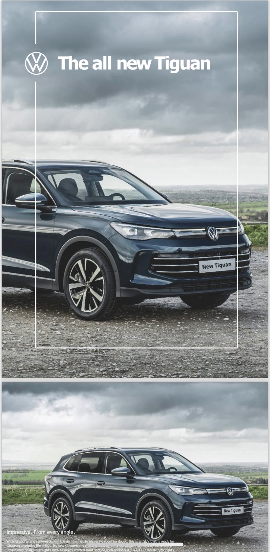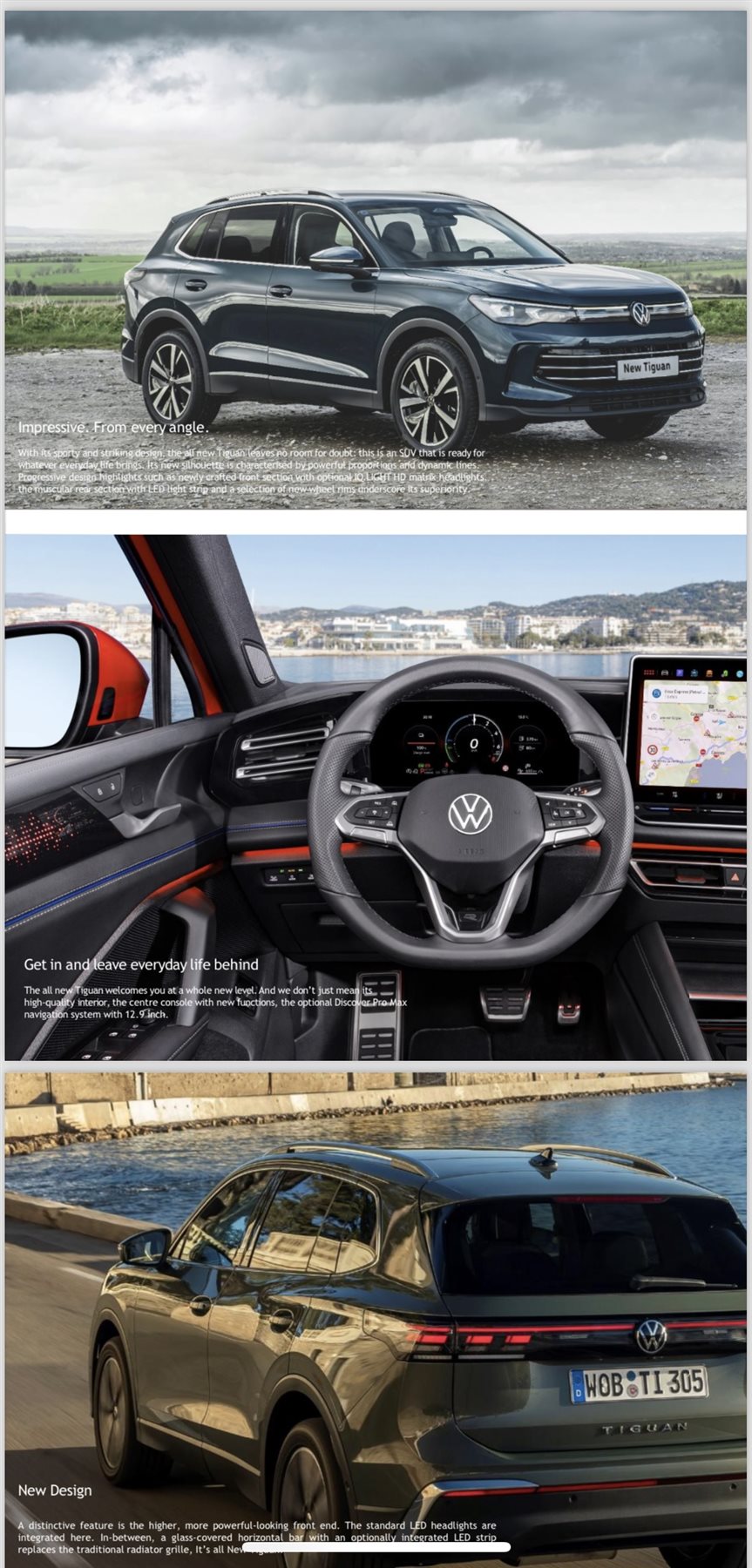 طرح الوكيل الرسمي لسيارات فولكس فاجن الجيل الثالث مِن طراز فولكس فاجن تيجوان في السوق المصرية بتصميم رياضي يتلاءم مع فئات الشباب حيث زودت بشبك التهوية الأمامي التقليدي بشريط أفقي مُغطى بالزجاج، ومصابيح رئيسية فئة Matrix LED ضمن التجهيزات الإضافية، بخلاف الشريط الضوئي فئة LED المُدمج والممتدِّ بعرض مقدمة السيارة الواجهة الأمامية.