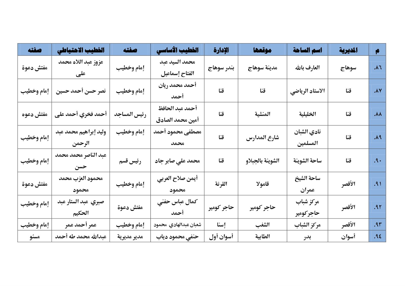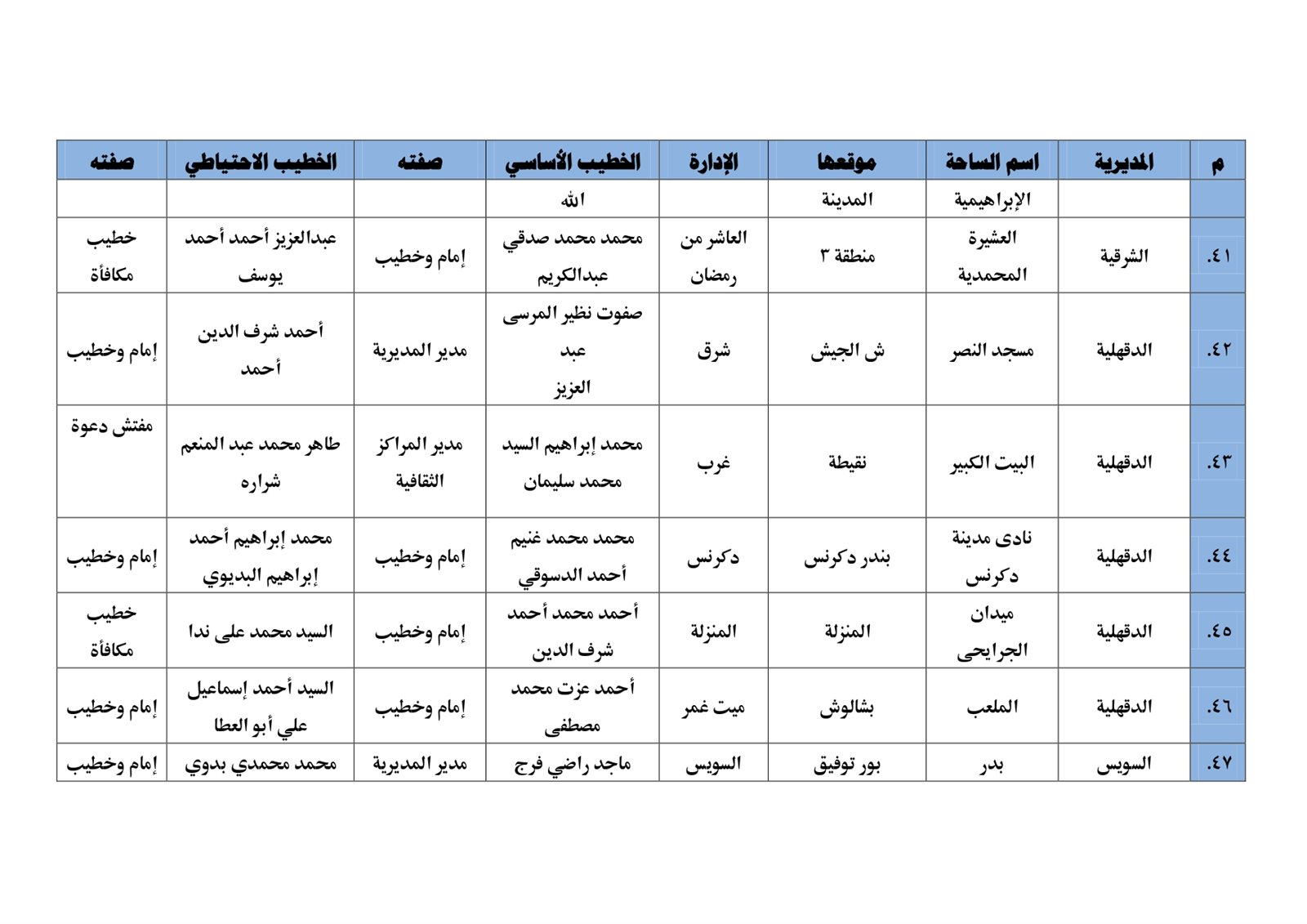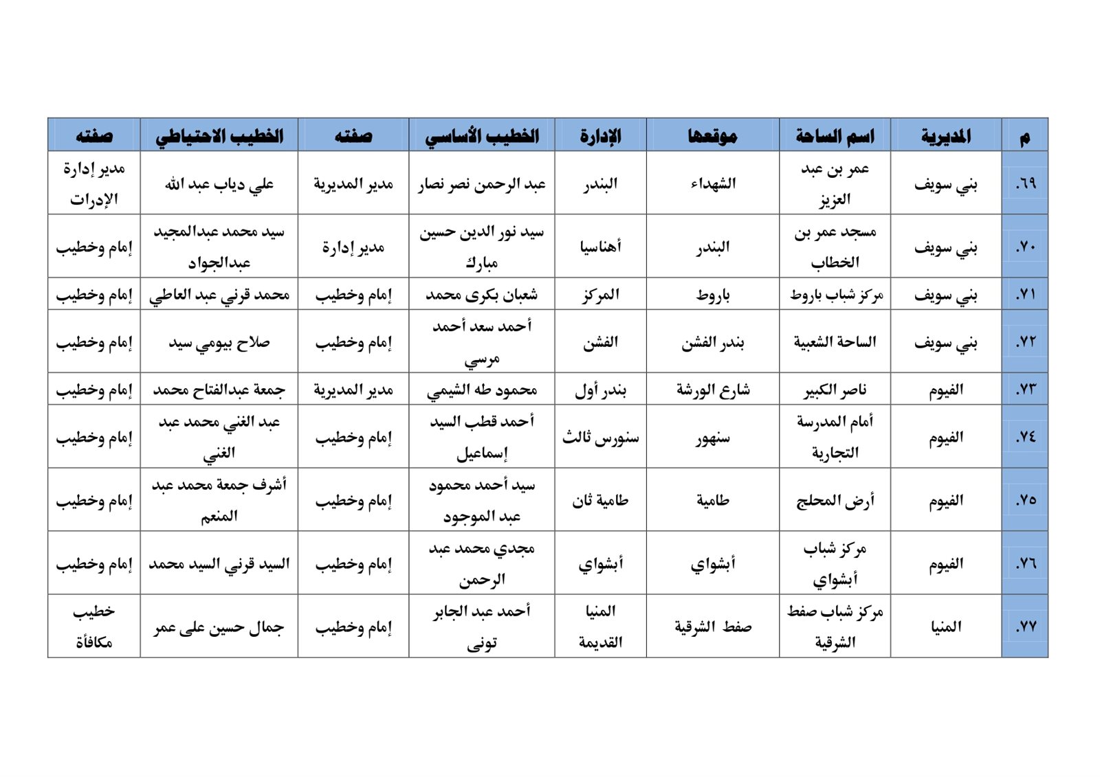 فعلى الآتية أسماؤهم استلام العمامة الأزهرية من مديرياتهم،وعلى مديري المديريات إرسال مندوبيهم لتسلم العمامة الأزهرية من الوزارة علمًا بأن التوزيع بالمديريات سيتم بدءًا من الثلاثاء 4 / 6 / 2024 م من الساعة الثامنة صباحًا حتى الساعة الثالثة عصرًا، وتحت مسئولية مدير المديرية.