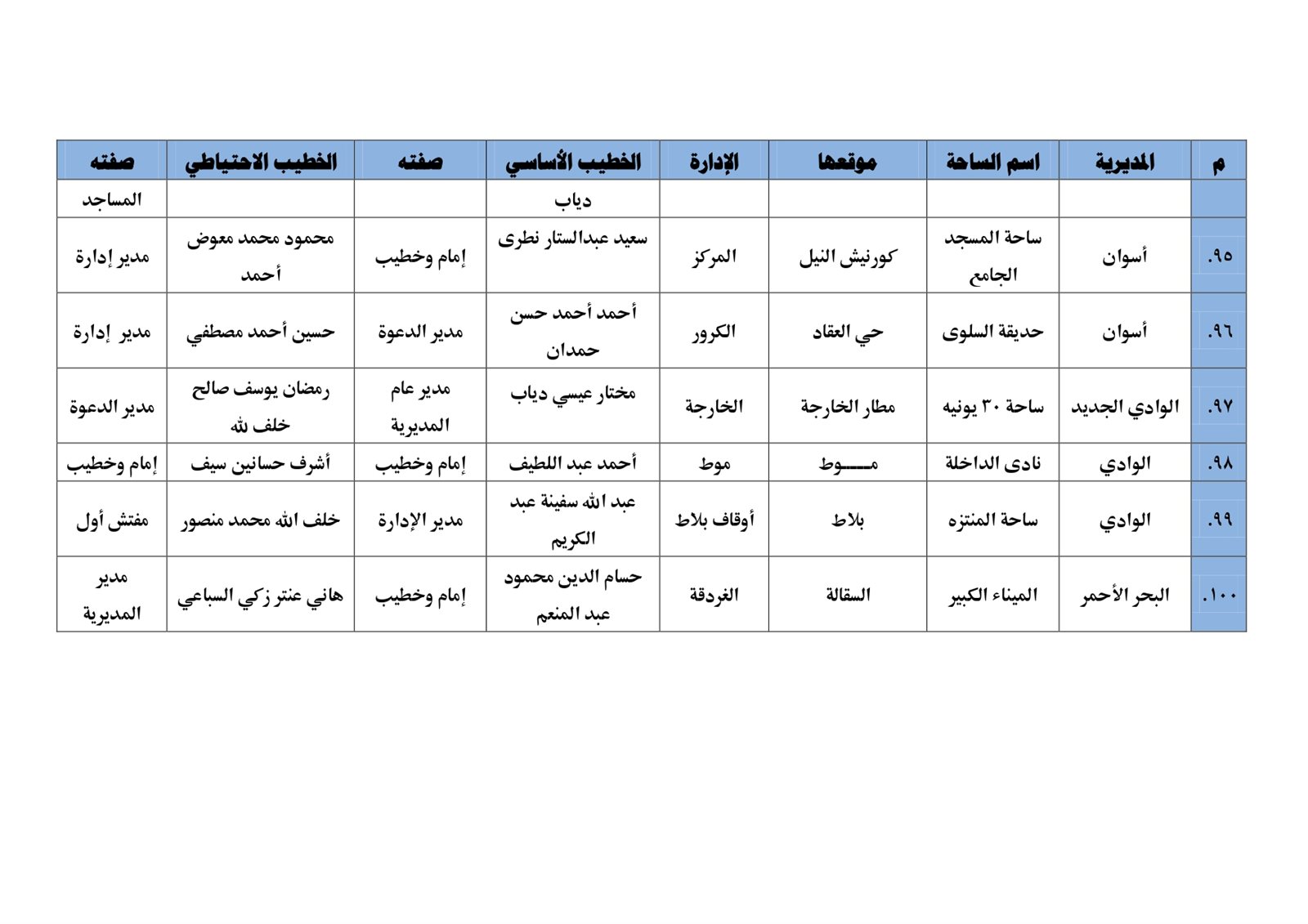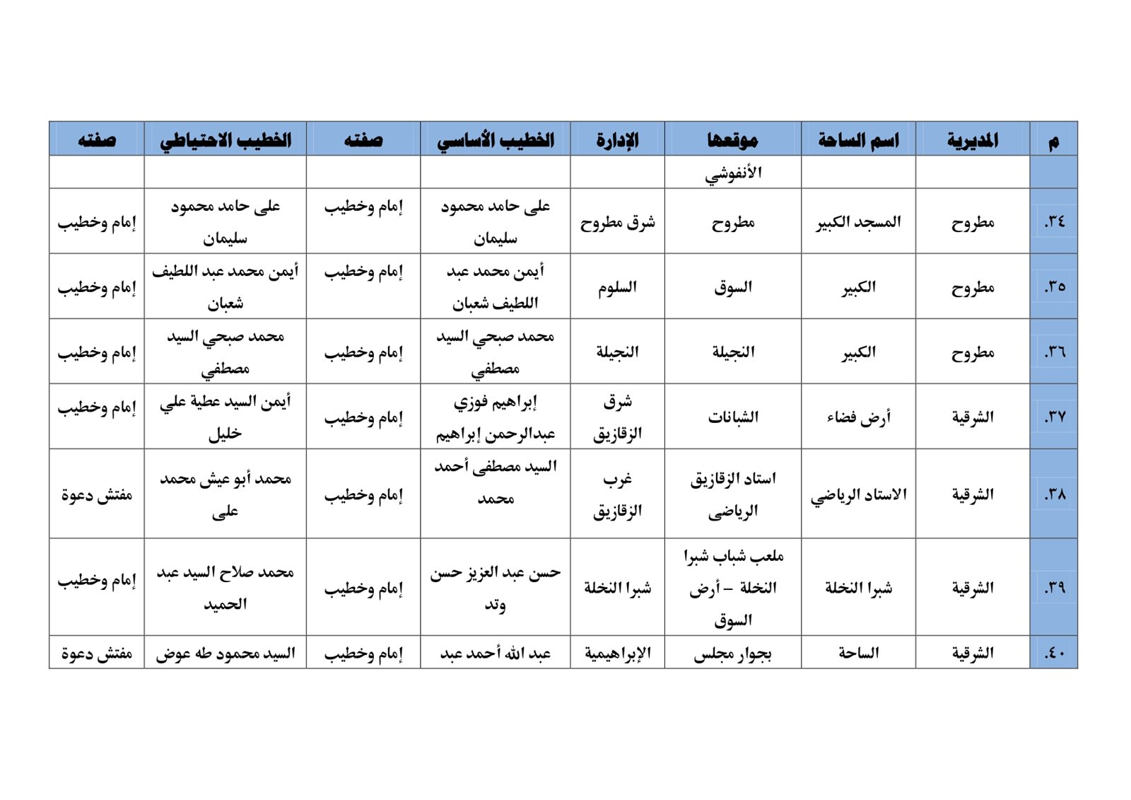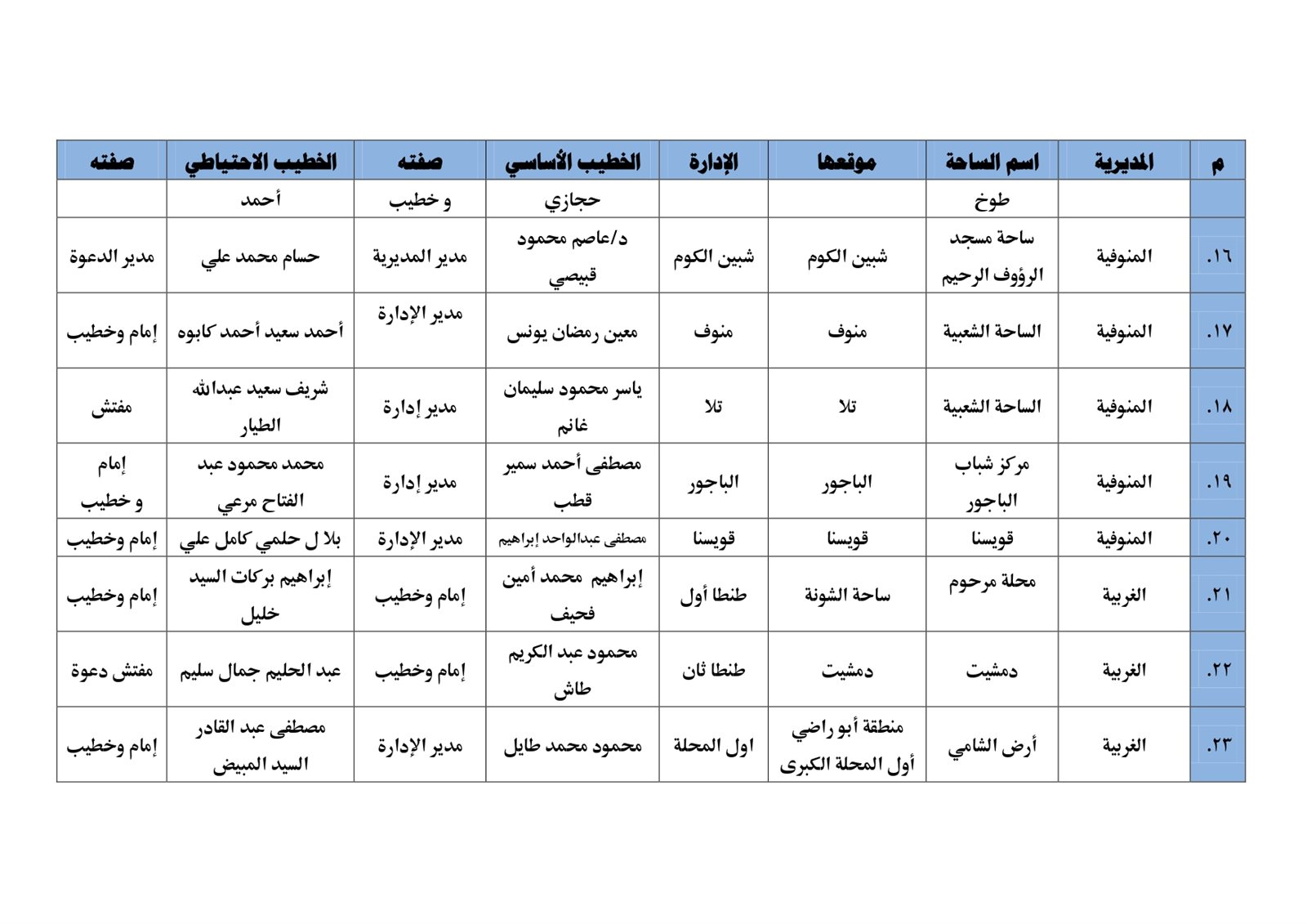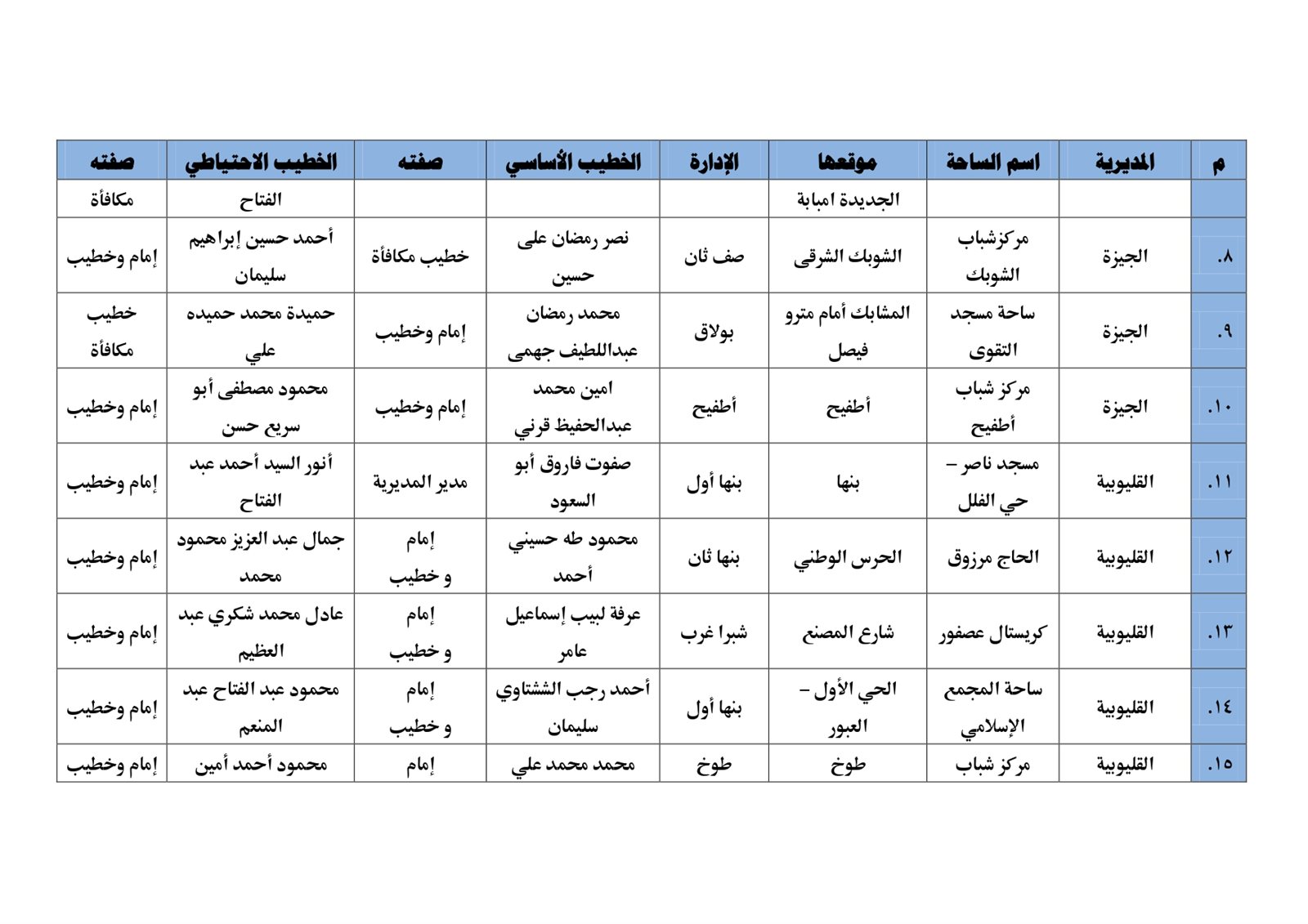 فعلى الآتية أسماؤهم استلام العمامة الأزهرية من مديرياتهم،وعلى مديري المديريات إرسال مندوبيهم لتسلم العمامة الأزهرية من الوزارة علمًا بأن التوزيع بالمديريات سيتم بدءًا من الثلاثاء 4 / 6 / 2024 م من الساعة الثامنة صباحًا حتى الساعة الثالثة عصرًا، وتحت مسئولية مدير المديرية.