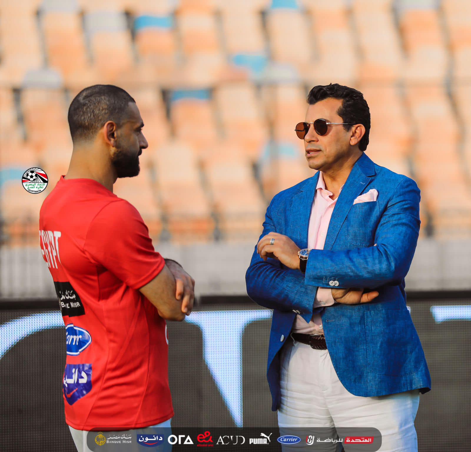 حضر مران المنتخب الدكتور أشرف صبحي وزير الشباب والرياضة وجمال علام رئيس مجلس إدارة اتحاد الكرة واللواء حلمي مشهور ومحمد أبو الوفا والدكتور إيهاب الكومي والدكتورة دينا الرفاعي أعضاء مجلس إدارة اتحاد الكرة ووليد عبد الوهاب رئيس هيئة استاد القاهرة