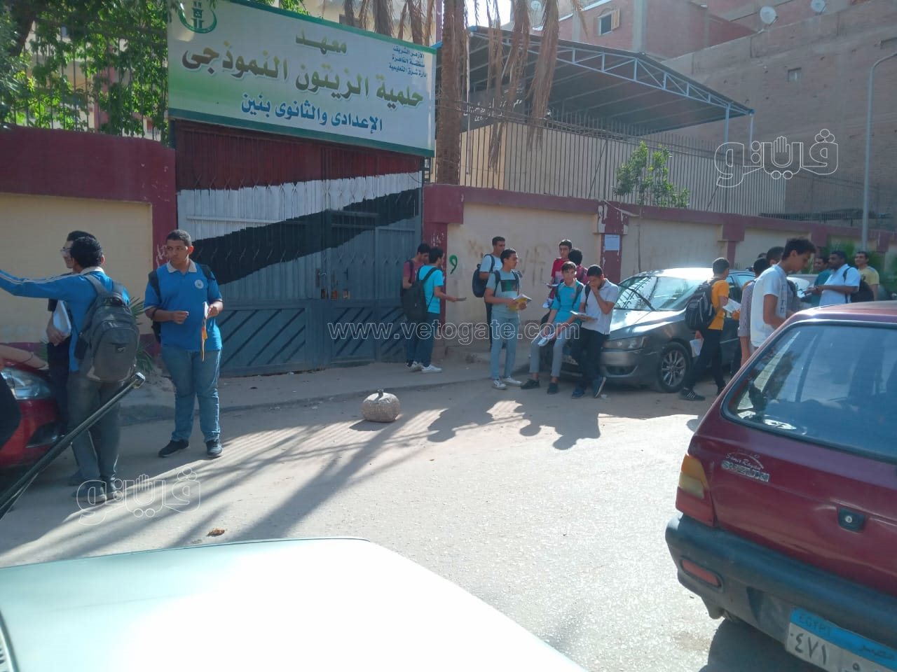 ورصدت عدسة فيتو أجواء توافد الطلاب على اللجان أمام لجنة معهد لحمة الزيتون الثانوي بنين في محافظة القاهرة.