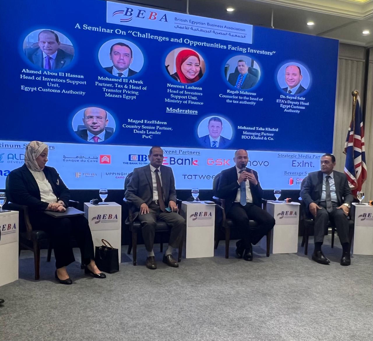 ومن جانبه توجه " مهند طه عضو مجلس إدارة الجمعية المصرية البريطانية للأعمال BEBA " بالشكر لكل من وزارة المالية ومصلحة الضرائب المصرية على تلبية الدعوة وحضور هذا اللقاء مثمنا التعاون الذي يقدمونه للمجتمع الضريبي ومجتمع الأعمال، مضيفا أن هناك العديد من التحديات التي تواجه مجتمع الأعمال فيما يتعلق بالمنظومة الضريبية، مشيرًا إلى أن الميكنة تعد من الخطوات الإيجابية التي تم تنفيذها مؤخرًا وكان لها أثر ملموس في المنظومة الضريبية.