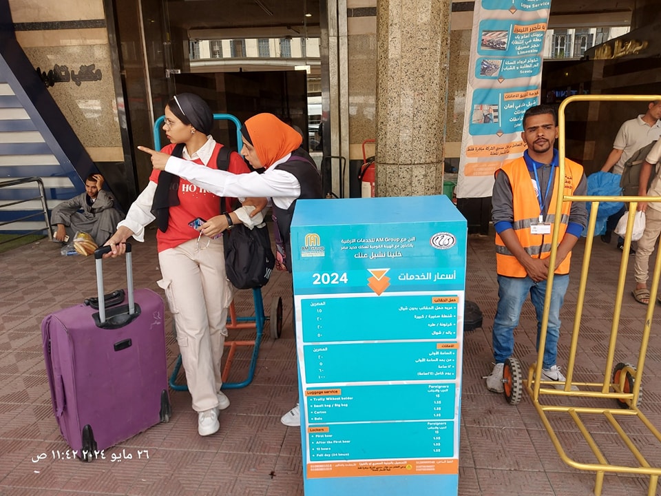 2 – خدمة حفظ الحقائب والأمتعة للركاب من خلال دولاب مجهز لحفظ الأمانات من خلال موظفين مدربين، وذلك مقابل مادى يحدد بالساعة وتقدم هذه الخدمة للمسافرين والقائمين بجولات سياحية حتى لا تسبب لهم الأمتعة والحقائب أى عائق.