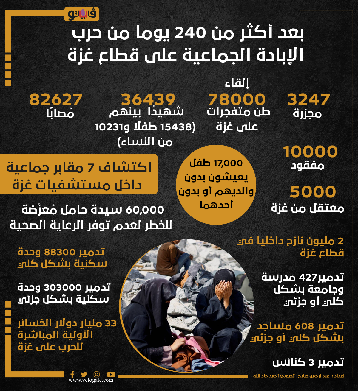 بعد أكثر من 240 يوما من حرب الإبادة الجماعية على قطاع غزة (انفوجراف) الأربعاء 05/يونيو/2024 - 12:12 م 6/5/2024 12:12:24 PM غزة، فيتو عبدالرحمن صلاح شارك طباعة 18 حجم الخط شارك طباعة غزة قطاع غزة طوفان الأقصى جيش الاحتلال فلسطين مجازر الاحتلال شهداء غزة
