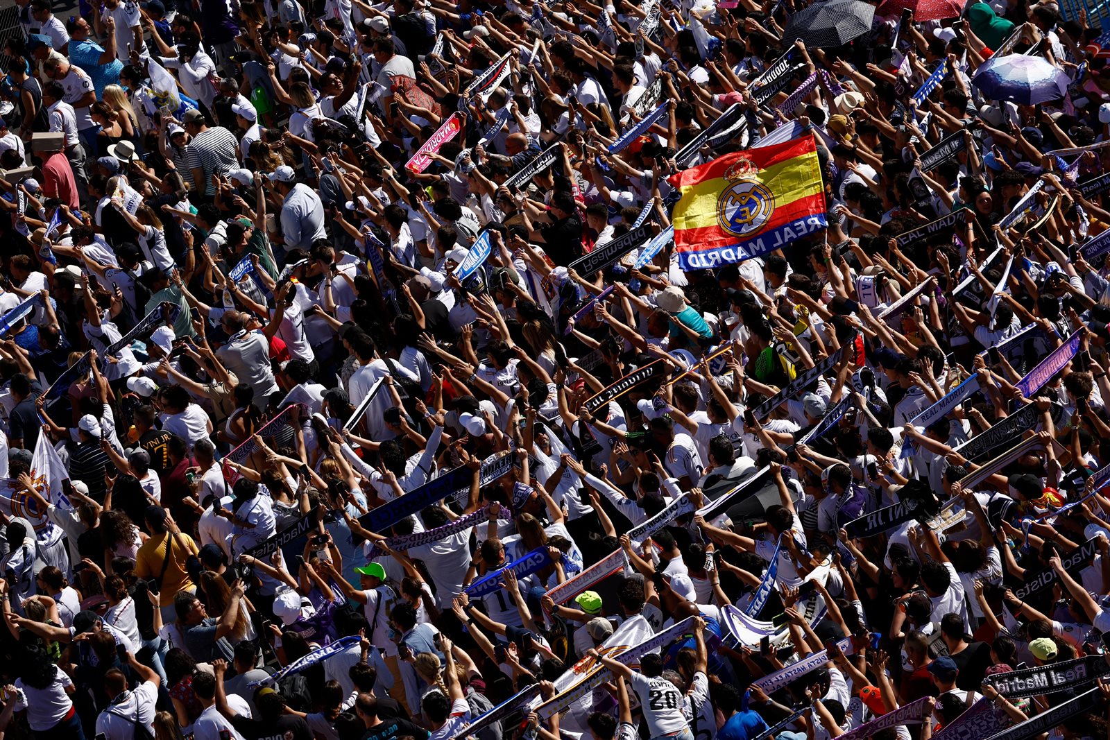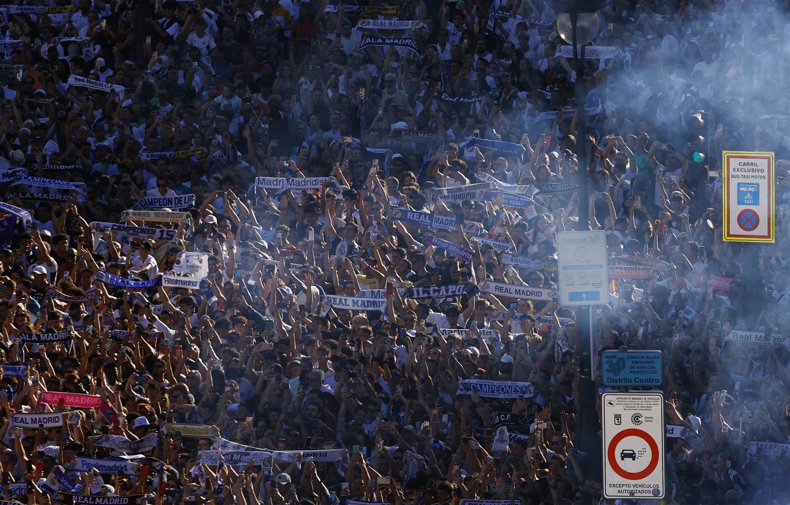احتفلت جماهير نادي ريال مدريد باللقب الـ15 لبطولة دوري أبطال أوروبا، مساء اليوم الأحد، بالقرب من نافورة سيبيليس في مدريد العاصمة الإسبانية.