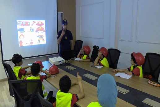 كما تم إلقاء محاضرة للأطفال تعرفوا خلالها على الدور المنوط لإدارة الحماية المدنية فى التعامل مع الكوارث الطبيعية والبشرية بكافة أقسامها والتي تشمل "الإطفاء - الإنقاذ - المفرقعات".
