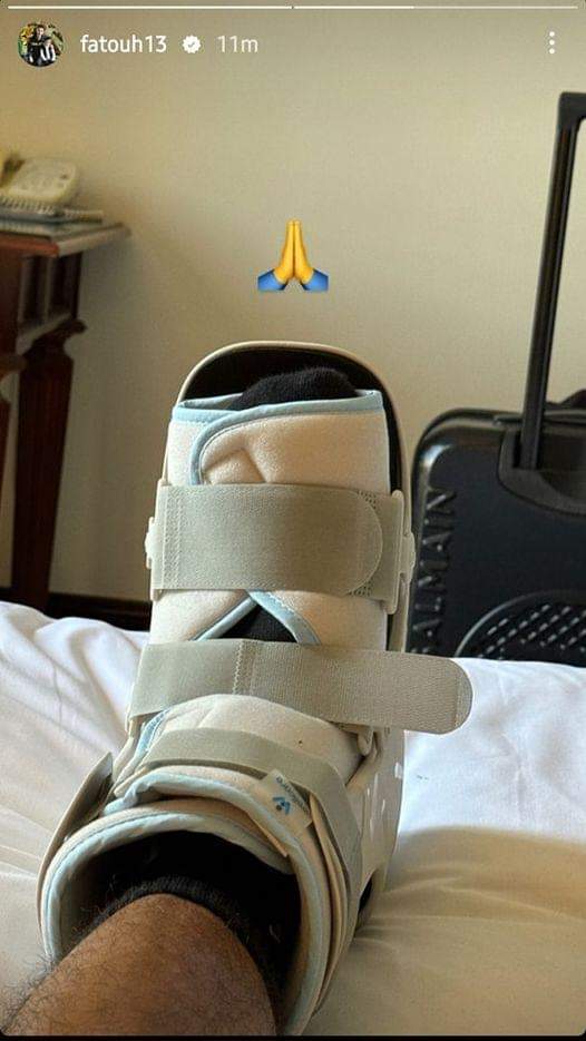 ونشر أحمد فتوح صورة لقدمه وهي في “جبيرة” عبر صفحته الرسمية على انستجرام.