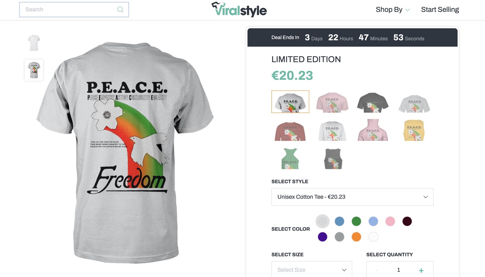 زين مالك، اظهر المغني الشهير، زين مالك، دعمه لدولة فلسطين، عبر ارتدائه، قميصًا يحمل عبارة "P.E.A.C.E"، من إنتاج علامة تجارية مؤيدة لفلسطين، وتذهب جميع عائداتها إلى صندوق إغاثة أطفال فلسطين.