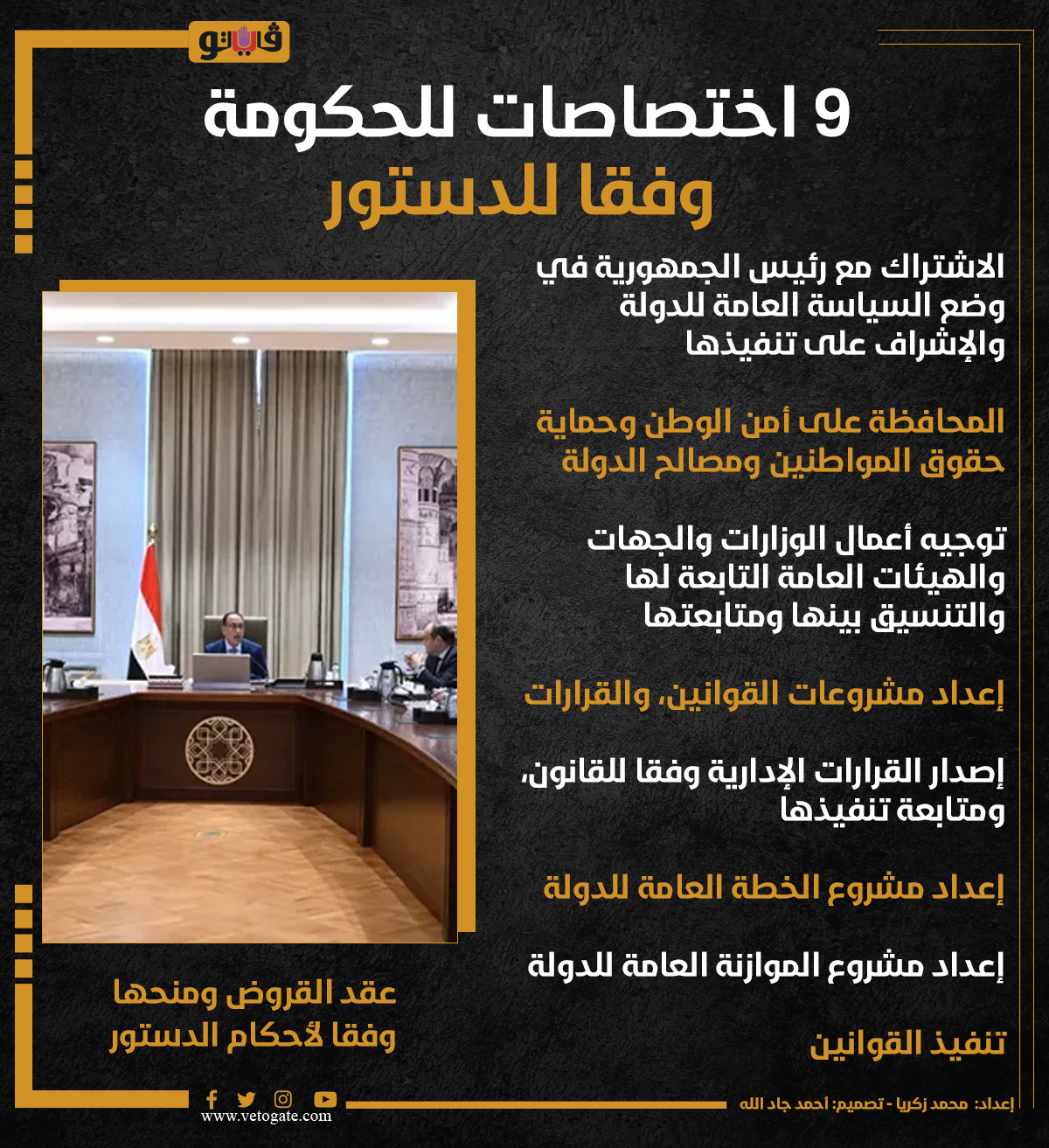 9 اختصاصات للحكومة وفقا للدستور (إنفوجراف) الثلاثاء 04/يونيو/2024 - 04:58 م 6/4/2024 4:58:57 PM الحكومة، فيتو محمد زكريا شارك طباعة 18 حجم الخط شارك طباعة إعداد مشروع الموازنة العامة للدولة الخطة العامة للدولة الموازنة العامة للدولة الموازنة العامة حماية حقوق المواطنين حقوق المواطنين حقوق المواطن مشروع الموازنة العامة للدولة