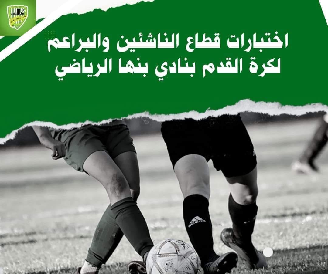 اختبارات الناشئين، أعلن نادي بنها الرياضي عن بدء اختبارات الناشئين والبراعم لكرة القدم من مواليد 2005 إلى مواليد 2016 اعتبارا من يوم الخميس الموافق 6-6-2024 بملعب النادي.