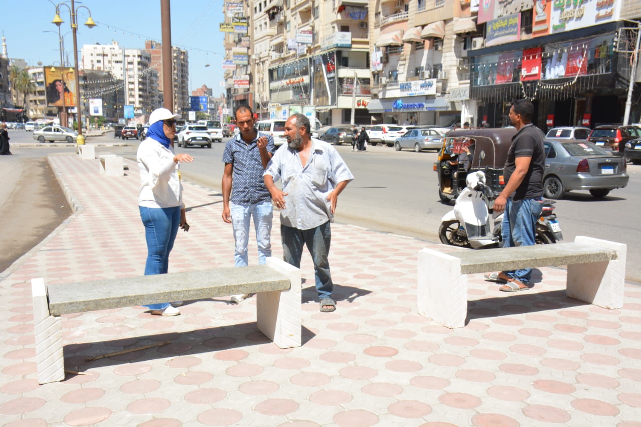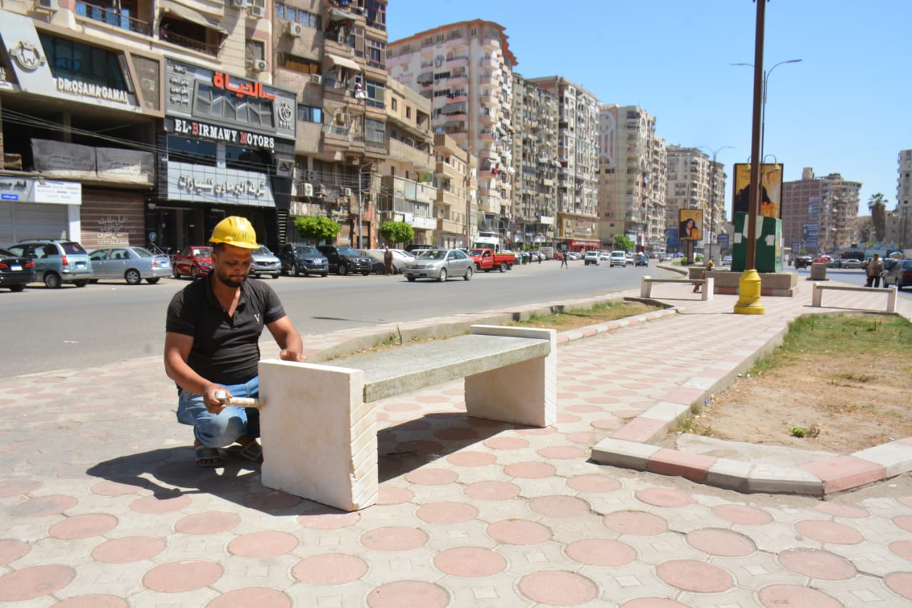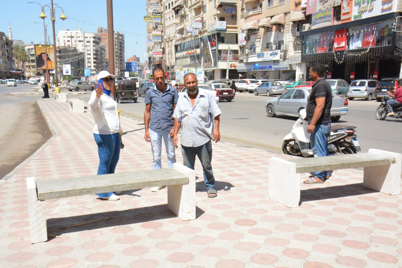 تركيب مقاعد انتظار للمواطنين بشارع قناة السويس في المنصورة