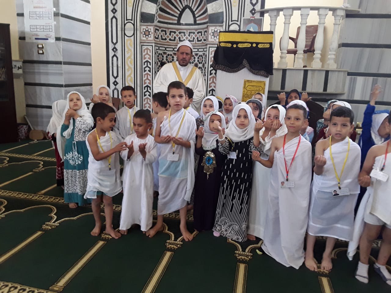 بملابس الإحرام، تعليم الأطفال مبادئ الحج بمسجد العزيز بالله في بني سويف (صور)