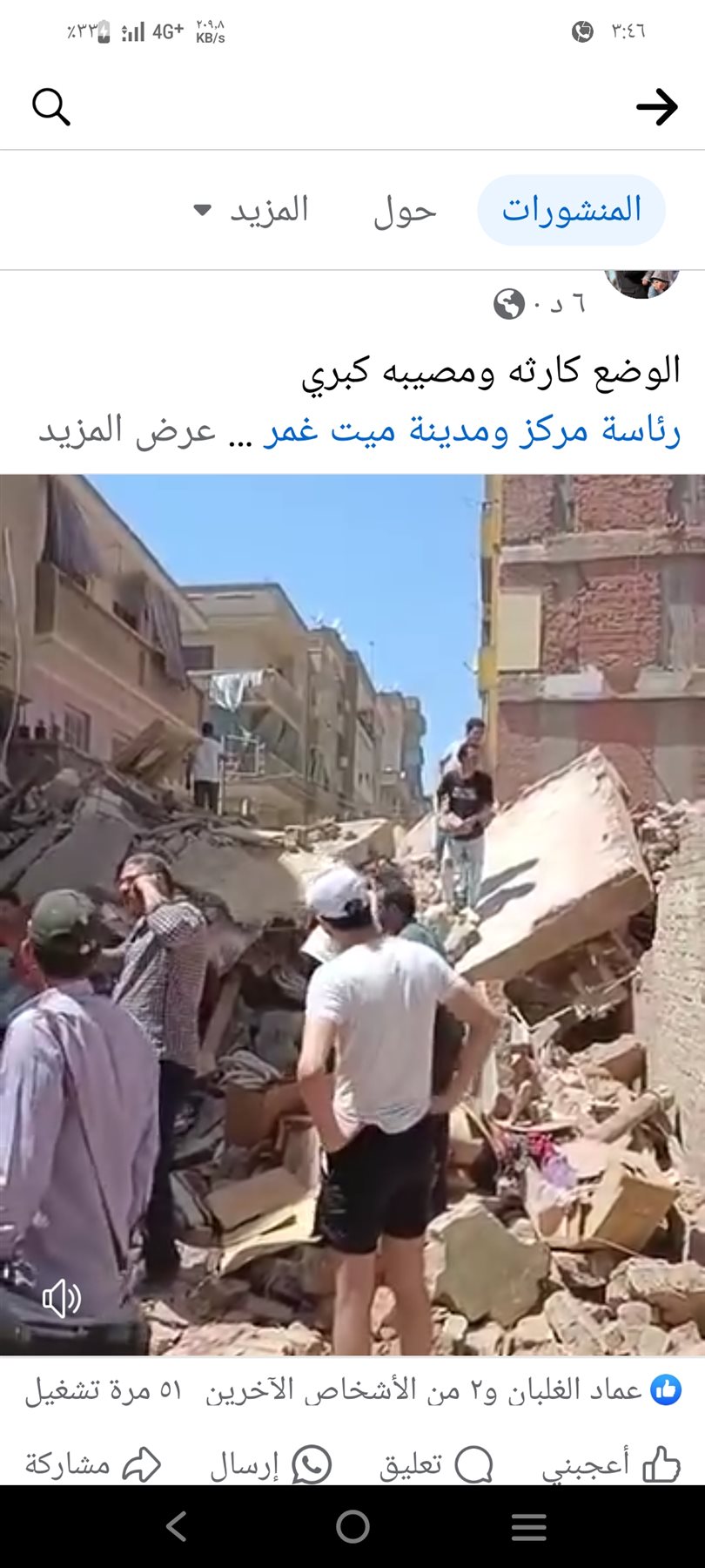 حيث انهار عقار مكون من 5 طوابق بمدينة ميت غمر في محافظة الدقهلية، وجارٍ البحث عن مصابين أو وفيات.