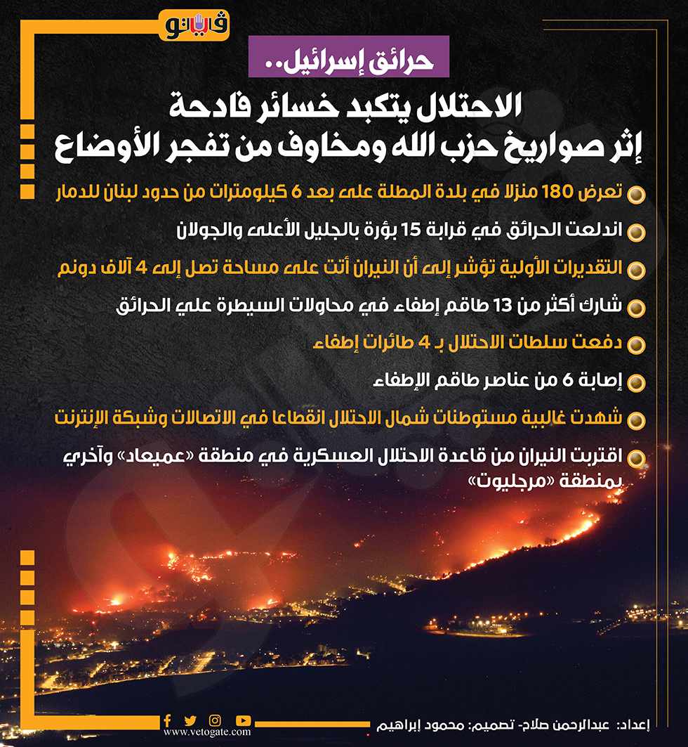 وصعد حزب الله خلال الساعات الماضية من هجمات الصواريخ والمسيرات، ما أسفر عن تسجيل العديد من الخسائر داخل المستوطنات الإسرائيلية، واندلعت حرائق هائلة في شمالي دولة الاحتلال، لتظهر داخل تل أبيب دعوات ومطالبات بضرورة الانتقام.