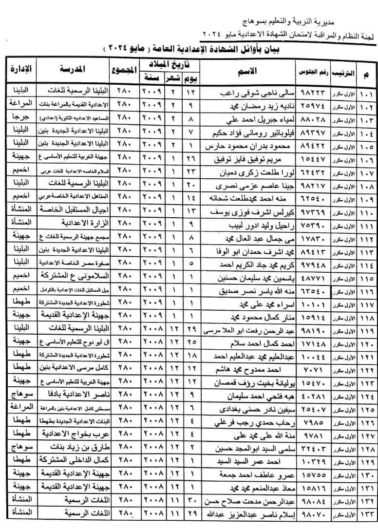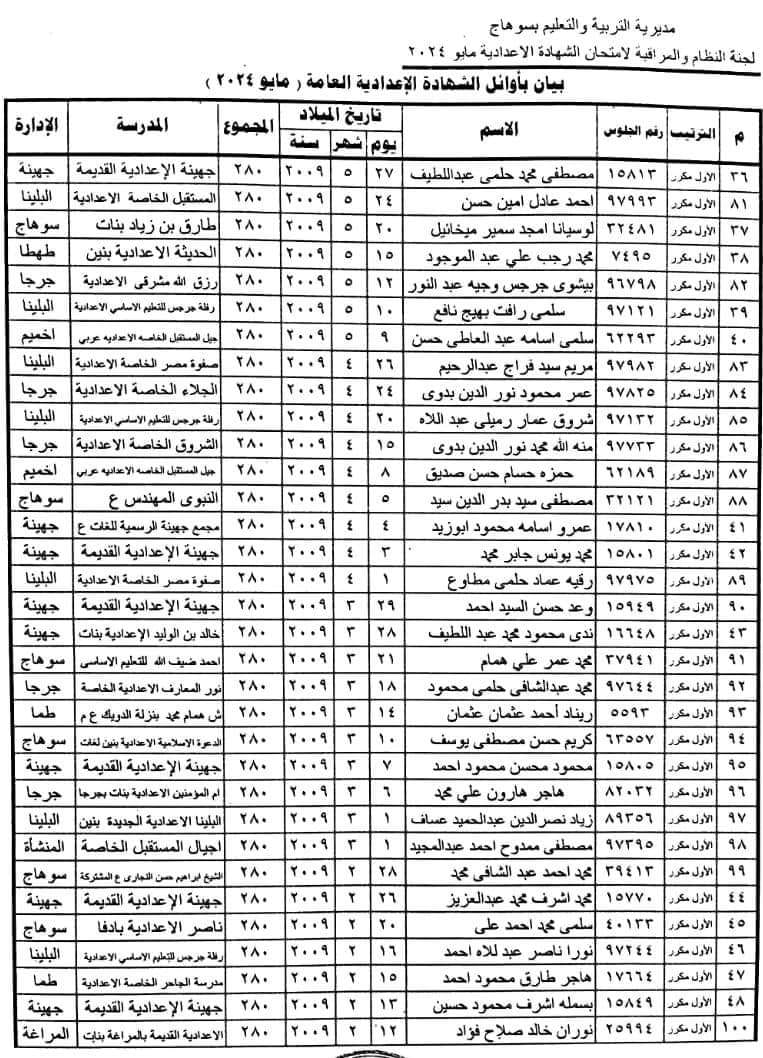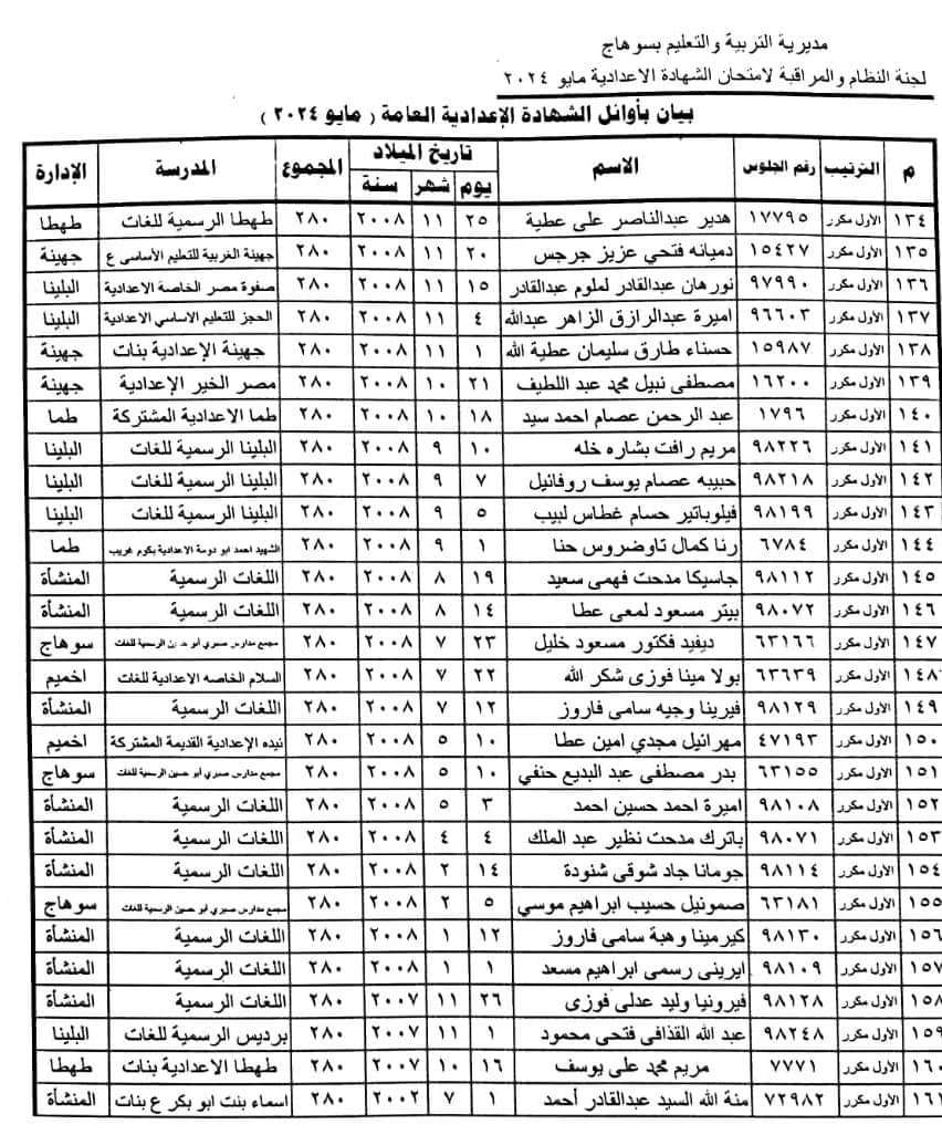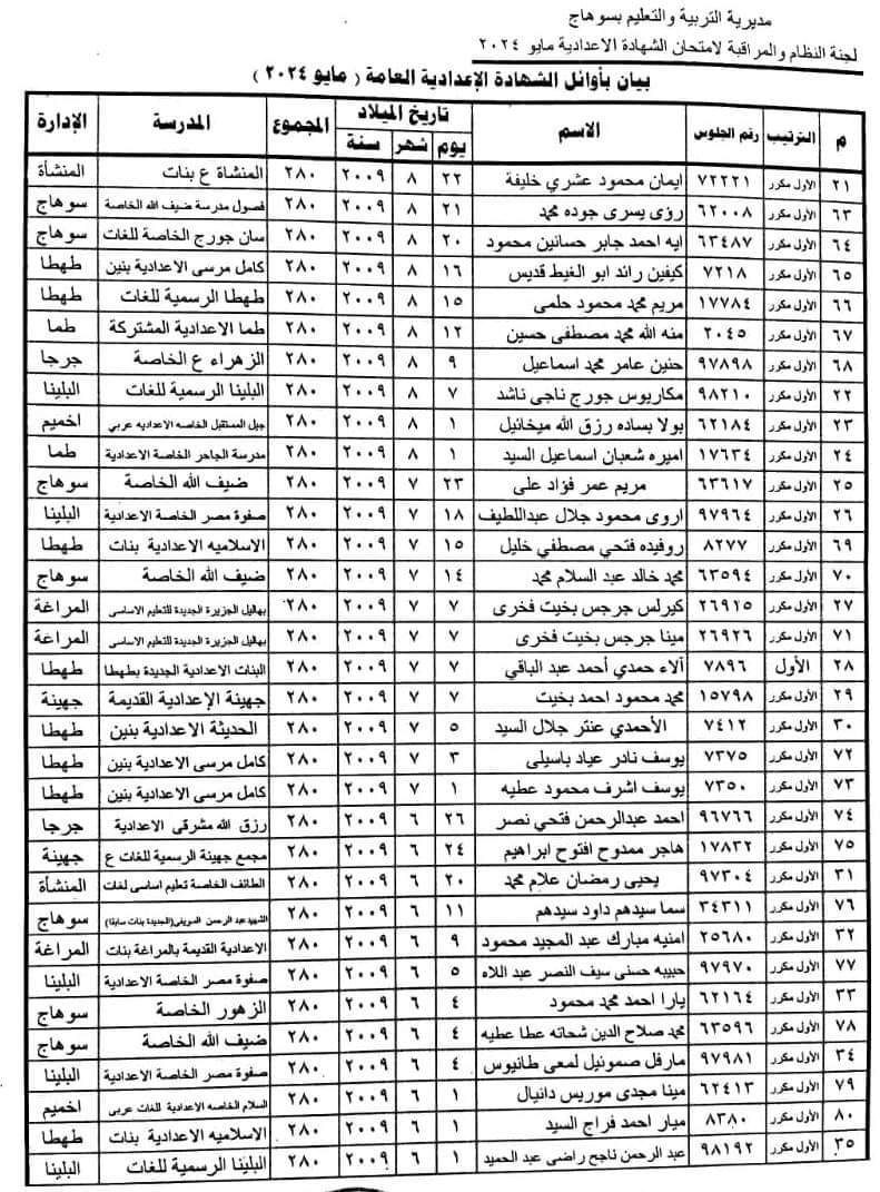 بالأسماء، أوائل الشهادة الإعدادية في سوهاج
