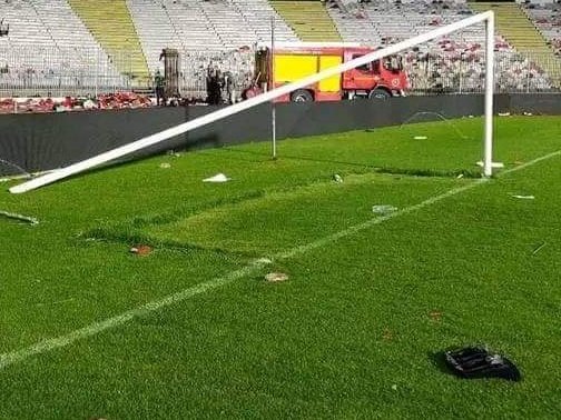 وحُطّمت خلال الأحداث الكراسي في ملعب الشهيد حملاوي الذي احتضن المباراة ورُميت على أرض الملعب، وسط تراشق بالمقذوفات بين مشجعي الفريقين وقوات الأمن الجزائرية.