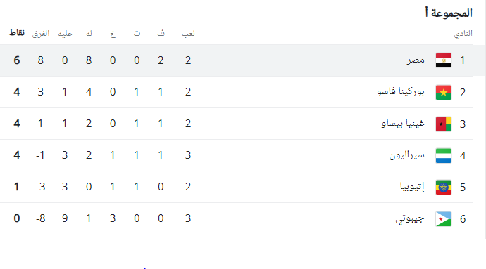 ترتيب مجموعة مصر قبل الجولتين الثالثة والرابعة