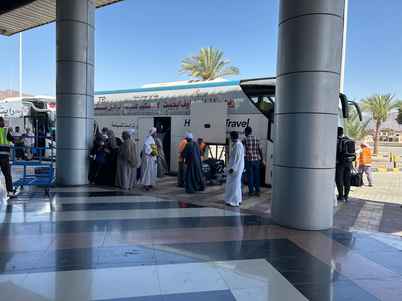 وقام مدير ميناء نويبع بالتنسيق مع الجهات العاملة بالميناء ( شرطة الميناء – الجوازات – الجمارك- الحجر الصحي )، من أجل سرعة إنهاء الإجراءات وتذليل كافة العوائق لخدمة حجاج بيت الله الحرام، وتم تزويد صالات السفر بعدد من العاملين المدربين، وعدد من الكراسي المتحركة لكبار السن وكافة الاسعافات الطبية.