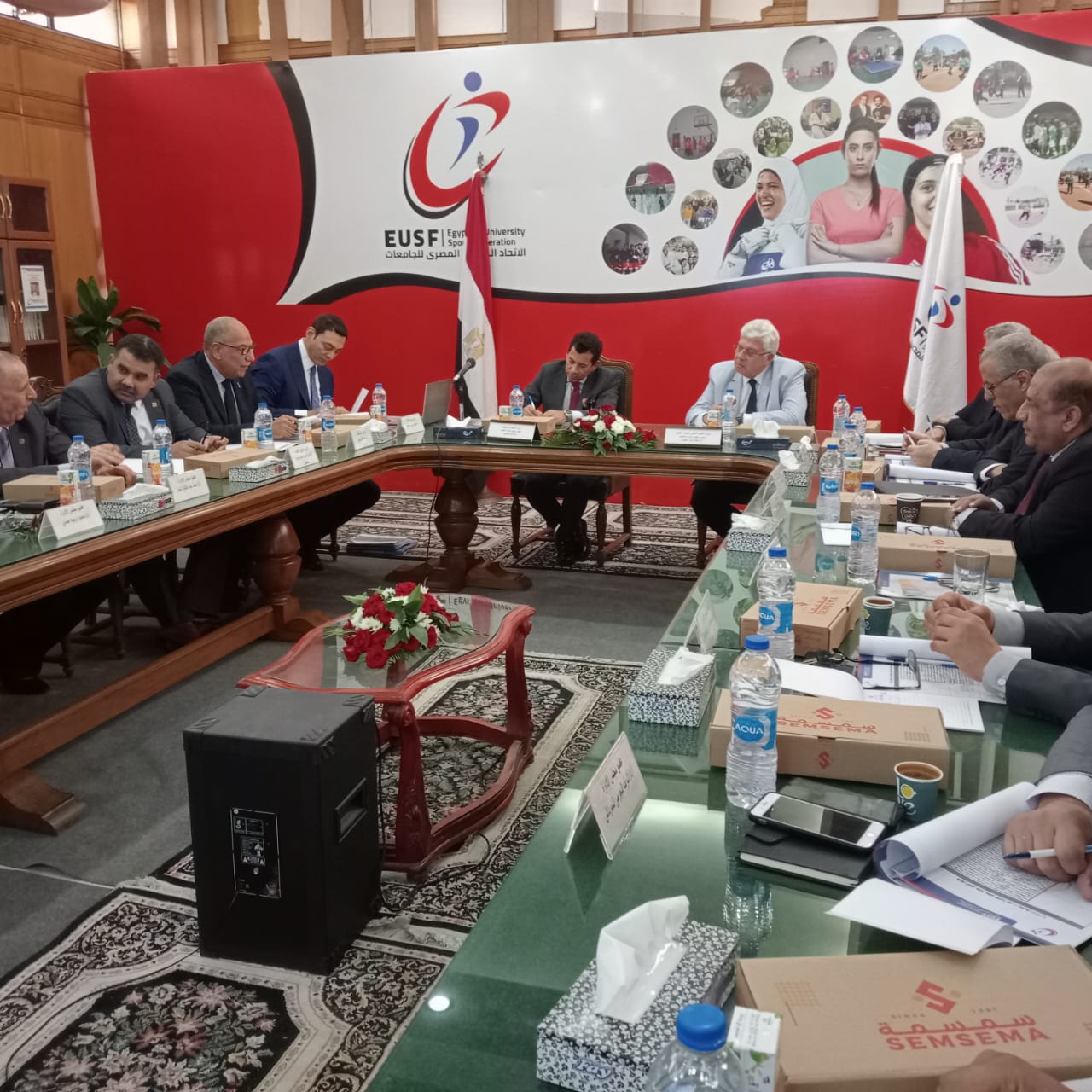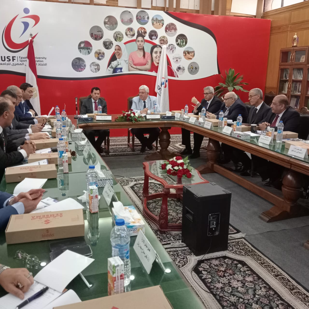 عقد مجلس إدارة الاتحاد الرياضي المصري للجامعات بتشكيله الجديد اجتماعًا برئاسة أيمن عاشور وزير التعليم العالي والبحث العلمي ورئيس مجلس إدارة الاتحاد، بحضور أشرف صبحي وزير الشباب والرياضة، ومصطفى بيومي نائب رئيس الاتحاد، وأعضاء المجلس، وذلك بمقر الاتحاد بالمدينة الجامعية بجامعة القاهرة.