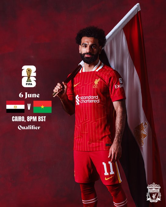 ووجه نادي ليفربول رسالة إلى النجم المصري محمد صلاح قائد الفراعنة قبل اللقاء حيث نشر صورة مرتديا قميص ليفربول ويحمل علم منتخب مصر قبل ساعات من المواجهة المرتقبة.