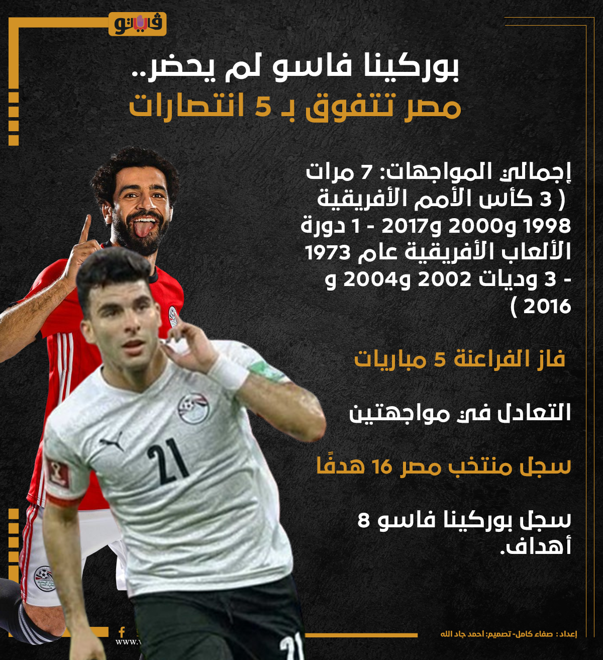 بوركينا فاسو لم يحضر، مصر تتفوق بـ 5 انتصارات (إنفوجراف) الخميس 06/يونيو/2024 - 06:30 م 6/6/2024 6:30:55 PM منتخب مصر، فيتو صفاء كامل شارك طباعة 18 حجم الخط شارك طباعة منتخب مصر وبوركينا فاسو لقاءات منتخب مصر وبوركينا فاسو منتخب مصر بوركينا فاسو كأس العالم التصفيات الإفريقية تصفيات كأس العالم
