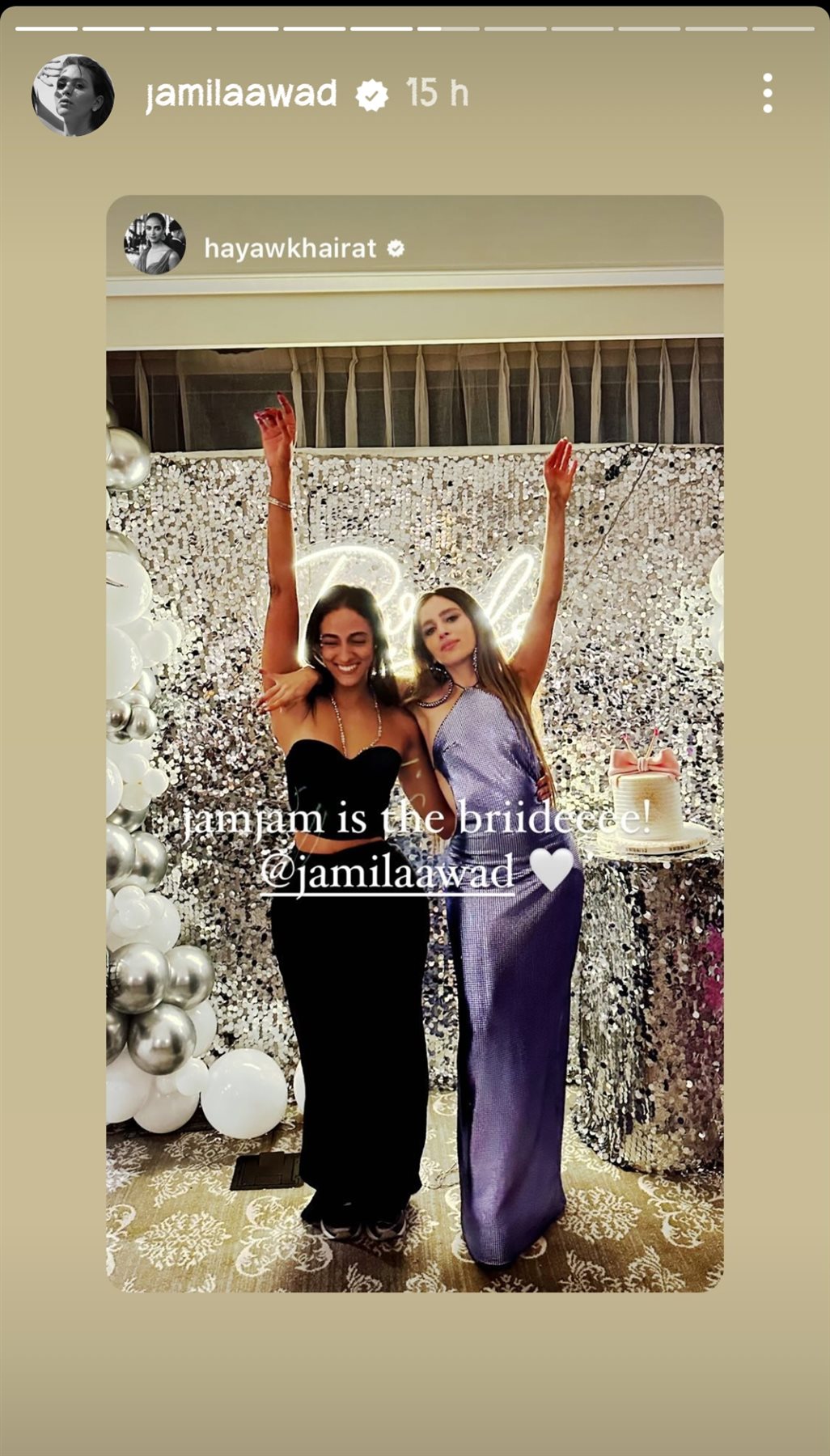 وسبق وأن نشرت جميلة عددا من القصص القصيرة على صفحتها الرسمية بموقع “إنستجرام” من حنتها مع عدد من صديقتها استعدادًا لحفل زفافها اليوم.