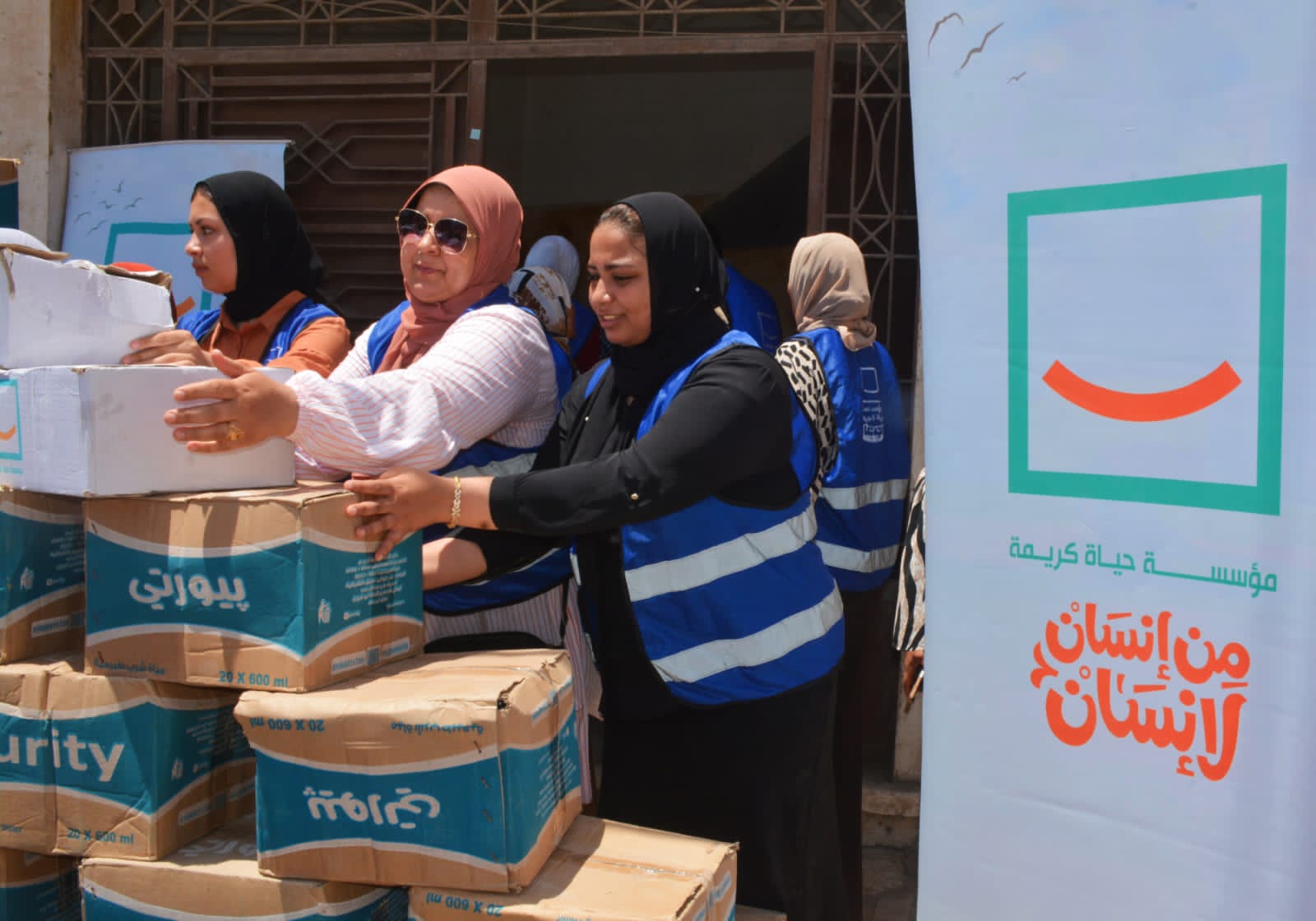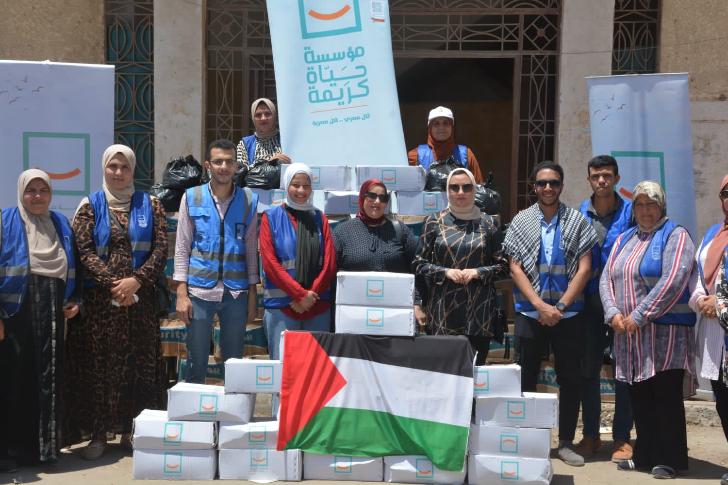 حياة كريمة بالبحيرة توزع حقائب غذائية على النازحين الفلسطينيين