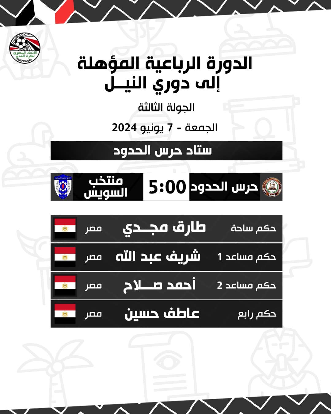 حرس الحدود يستضيف منتخب السويس في دورة الترقي للممتاز