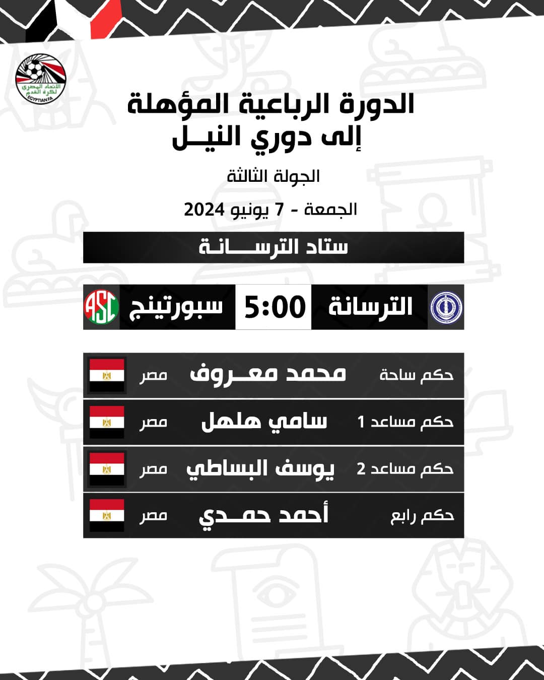 وعلى الجانب الآخر يبحث عن الترسانة عن تحقيق فوزه الأول بعد تعادله مع منتخب السويس سلبيا في الجولة الماضية وخسارة الشواكيش في الجولة الأولى أمام حرس الحدود.