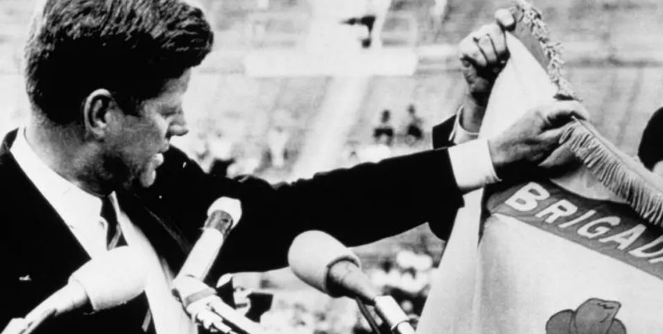 خليج الخنازير: في أبريل عام 1961 وبعد تنصيبه مباشرة رئيسا للولايات المتحدة، وافق جون كينيدي على خطة لغزو كوبا والإطاحة بالحكم.